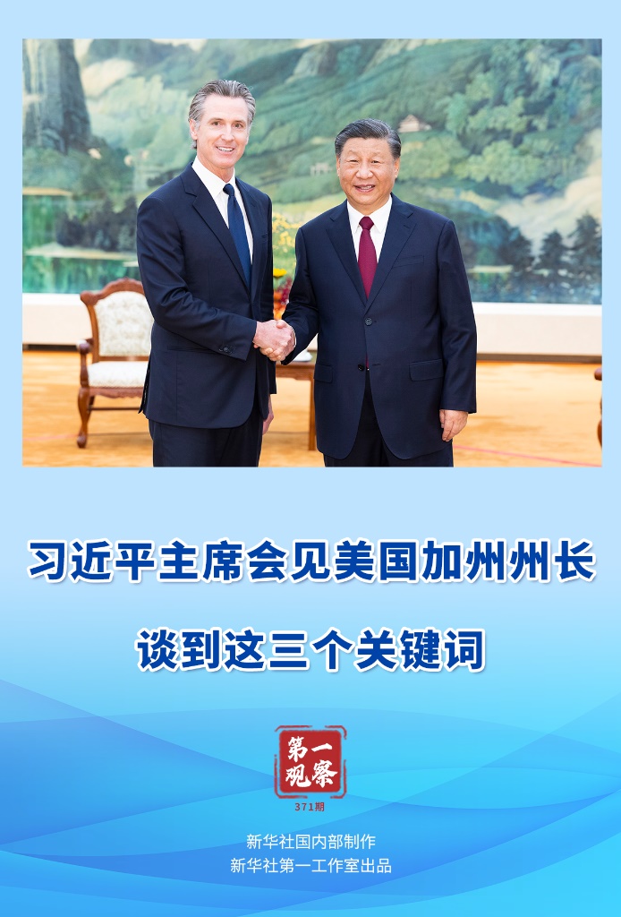 加利福尼亞,美國西海岸重要門戶,經(jīng)濟(jì)總量居全美各州首位,在對華友好交往和務(wù)實合作中長期走在全美前列。紐森此次于10月23日至29日訪華,是2020年以來第一位來訪的美國州長。在中美關(guān)系呈現(xiàn)止跌企穩(wěn)積極勢頭的關(guān)鍵時刻,習(xí)近平主席會見美國加州州長,備受中美兩國和國際社會關(guān)注。習(xí)近平主席談到的三個關(guān)鍵詞,飽含深意。