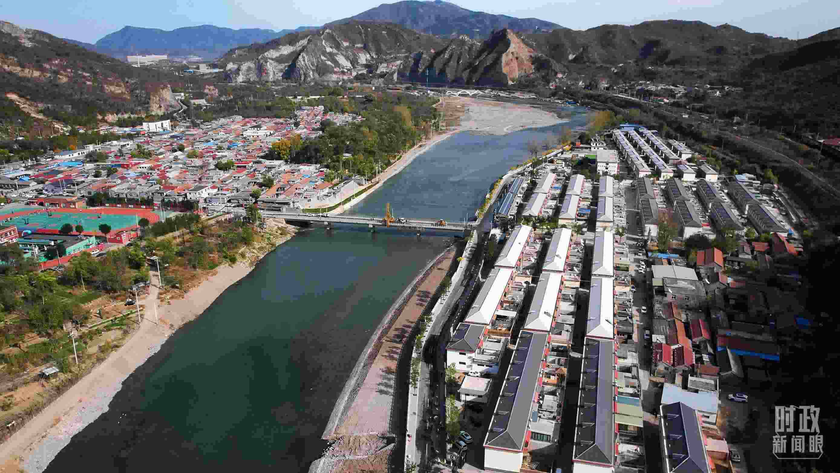 △ 永定河兩邊分別是總書記此次考察的妙峰山民族學(xué)校與水峪嘴村。(總臺國廣記者李晉拍攝)