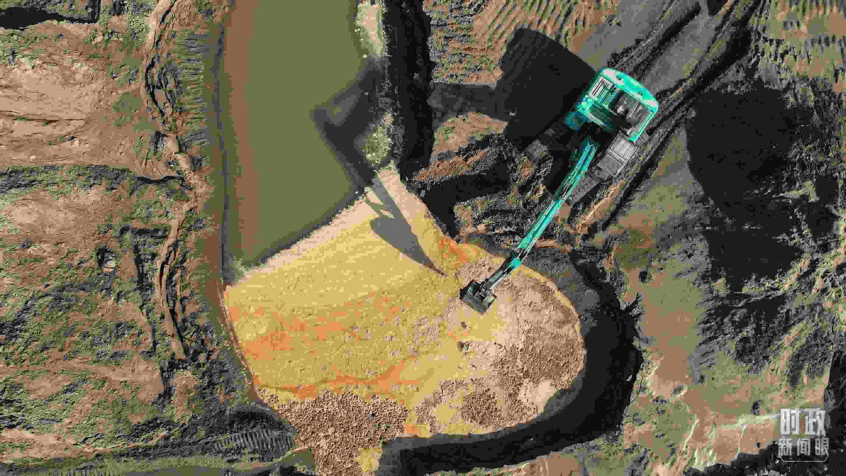 △ 白溝河治理工程(涿州段)施工現(xiàn)場航拍。(總臺國廣記者李晉拍攝)