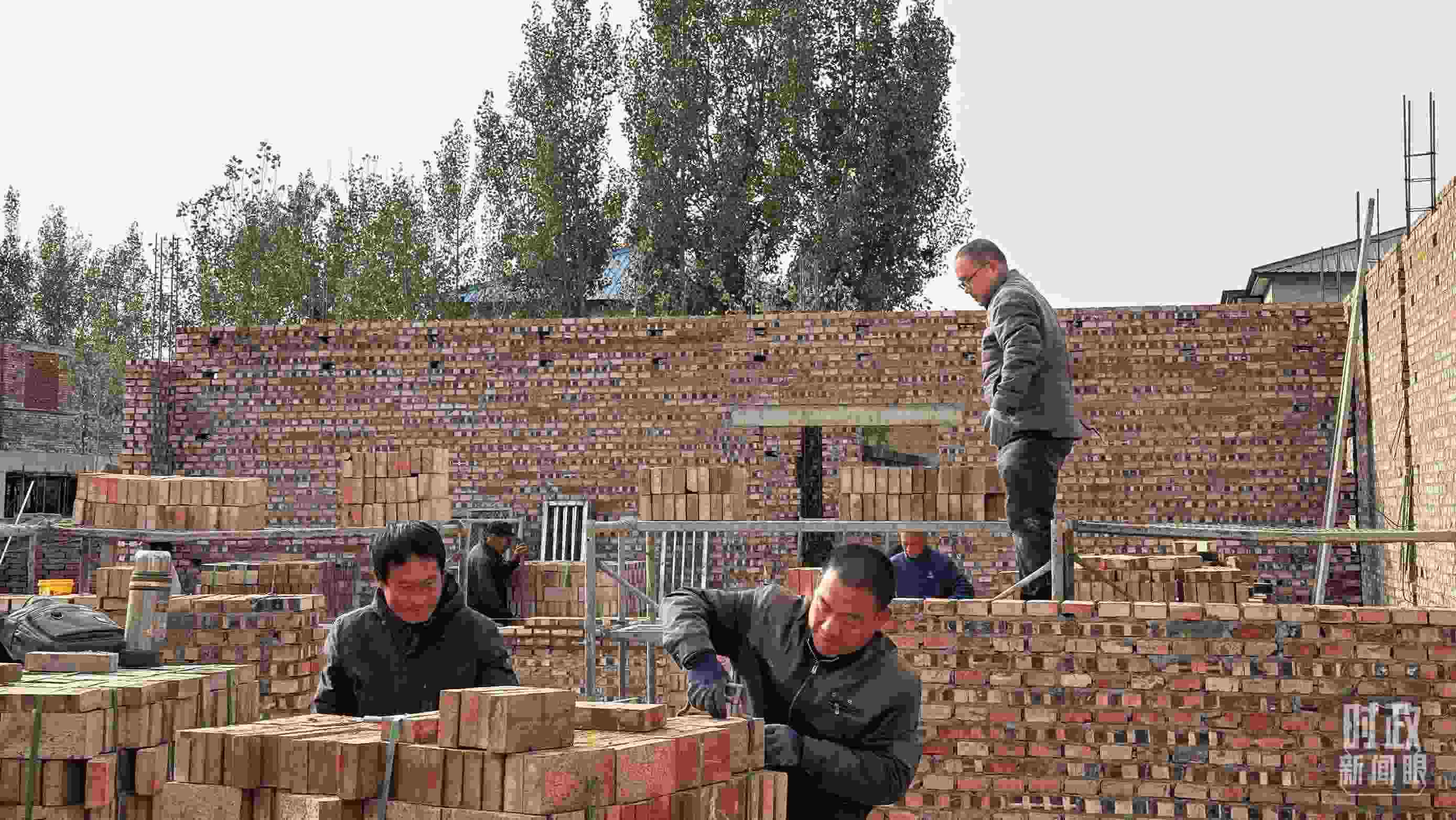 △ 刁窩鎮(zhèn)萬全莊村村民正在重建房屋。(總臺央視記者李輝拍攝)
