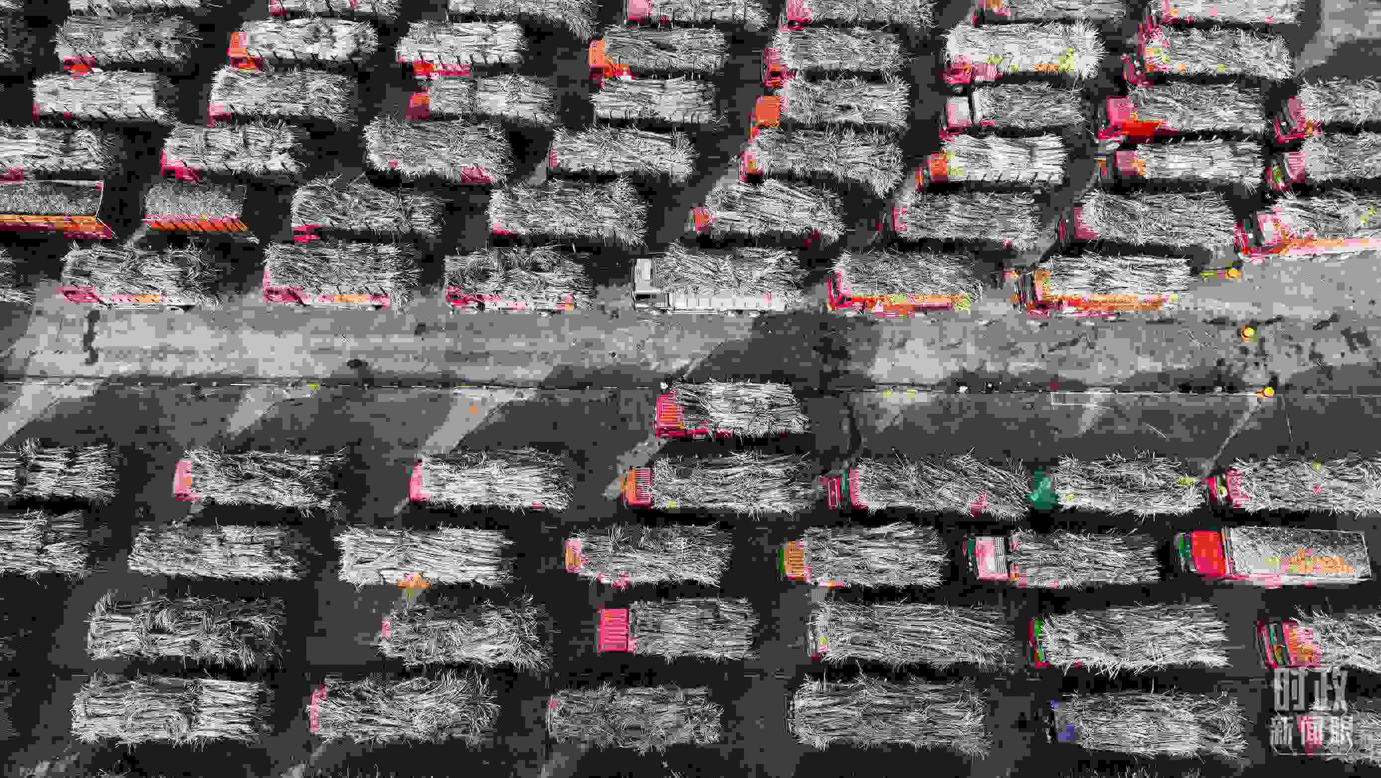 △來(lái)賓東糖鳳凰有限公司內(nèi)的甘蔗原料停放區(qū)。(總臺(tái)央視記者范凱拍攝)