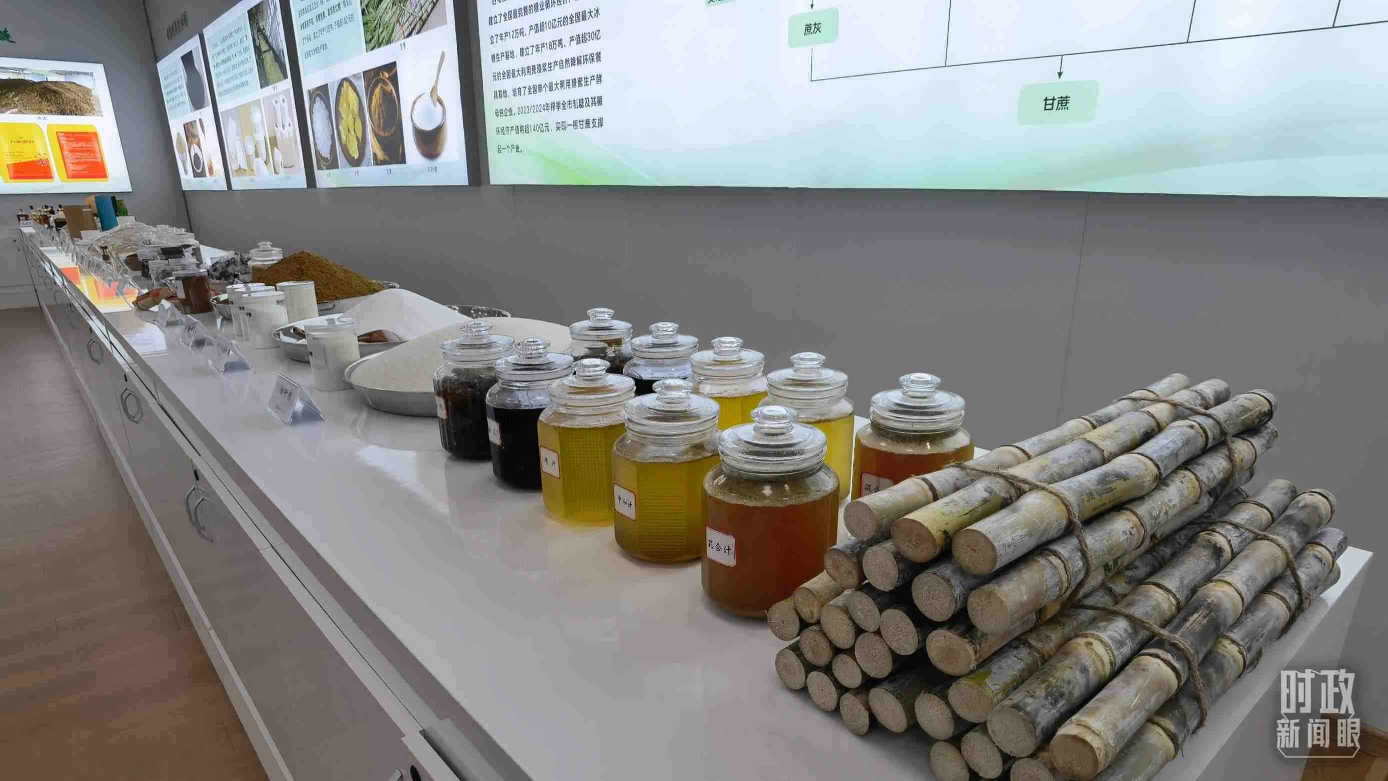 △甘蔗深加工產(chǎn)業(yè)鏈及產(chǎn)品展示。(總臺(tái)央視記者鐘銳拍攝)