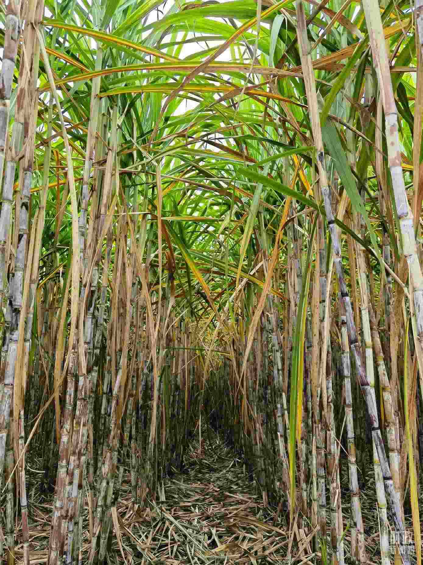 12月的廣西來(lái)賓,日均溫度約20℃。高達(dá)3米的甘蔗盡享溫暖與濕潤(rùn),接連成片,涌動(dòng)起綠色的波濤。這里是我國(guó)蔗糖主產(chǎn)區(qū),“高個(gè)子”、“黑皮膚”的甘蔗成為當(dāng)?shù)匕傩盏闹赂弧懊邸狈健?/p>