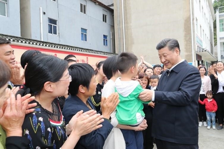 △2018年4月24日,習近平總書記在湖北宜昌調研長江生態(tài)環(huán)境修復工作。這是總書記在許家沖村了解移民群眾生活和發(fā)展特色產業(yè)等情況。