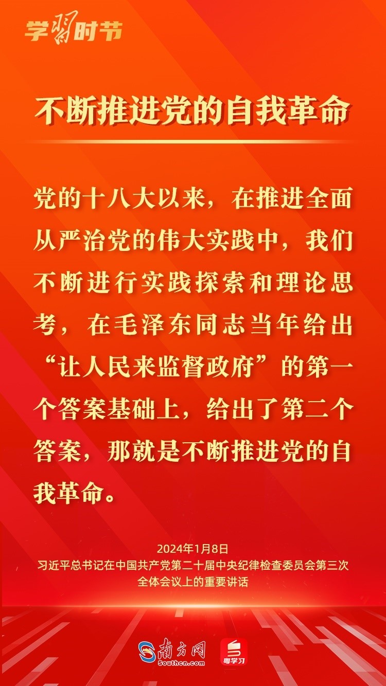 1月8日,中共中央總書記、國家主席、中央軍委主席習近平在中國共產(chǎn)黨第二十屆中央紀律檢查委員會第三次全體會議上發(fā)表重要講話,深刻闡述黨的自我革命的重要思想,對持續(xù)發(fā)力、縱深推進反腐敗斗爭作出戰(zhàn)略部署。