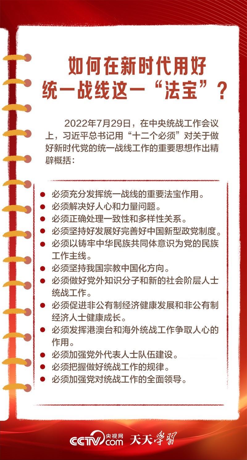 在百余年的奮斗歷程中,我們黨始終把統(tǒng)一戰(zhàn)線擺在重要位置,讓團(tuán)結(jié)的旋律始終高昂,共同奮斗的力量始終激蕩。從“重要法寶”到“強(qiáng)大法寶”,體現(xiàn)出總書記對黨的統(tǒng)戰(zhàn)工作一以貫之的高度重視。