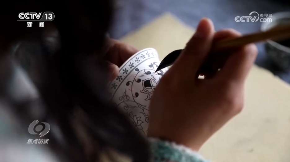 24歲的楊紫萱是孫立新的一位徒弟,去年6月,她開始跟孫立新學習陶瓷繪畫技藝。