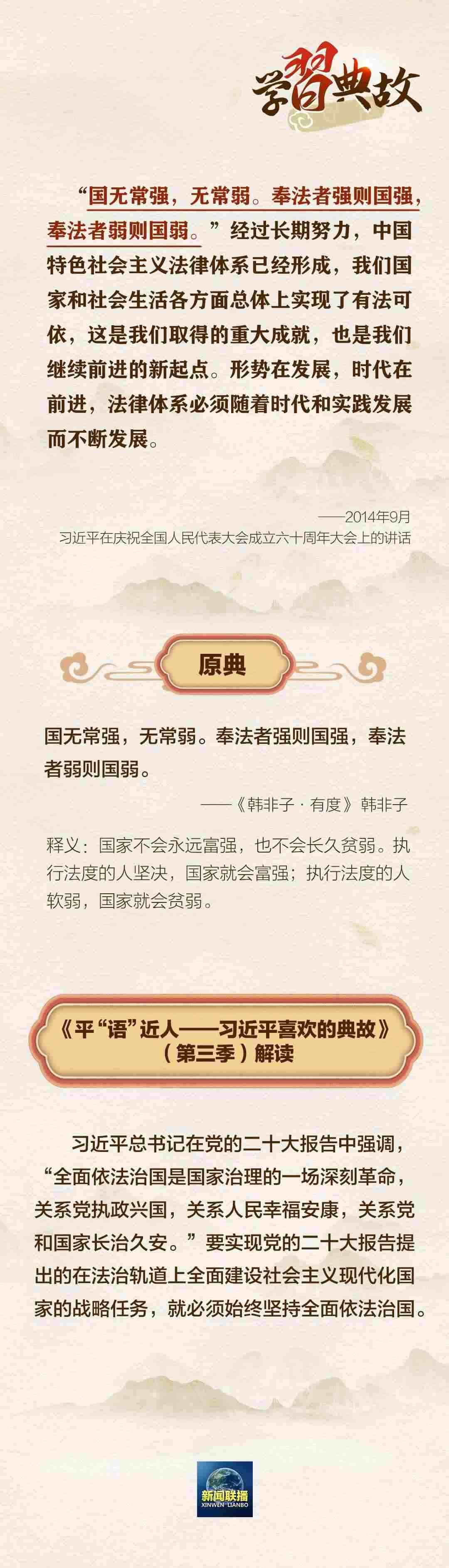 黨的二十大報(bào)告將法治建設(shè)單獨(dú)作為一個(gè)部分進(jìn)行專章論述、專門部署,這充分體現(xiàn)了以習(xí)近平同志為核心的黨中央對(duì)法治建設(shè)的高度重視。圍繞“全面依法治國”這一主題,總書記曾講到哪些典故?一起學(xué)習(xí)↓↓↓