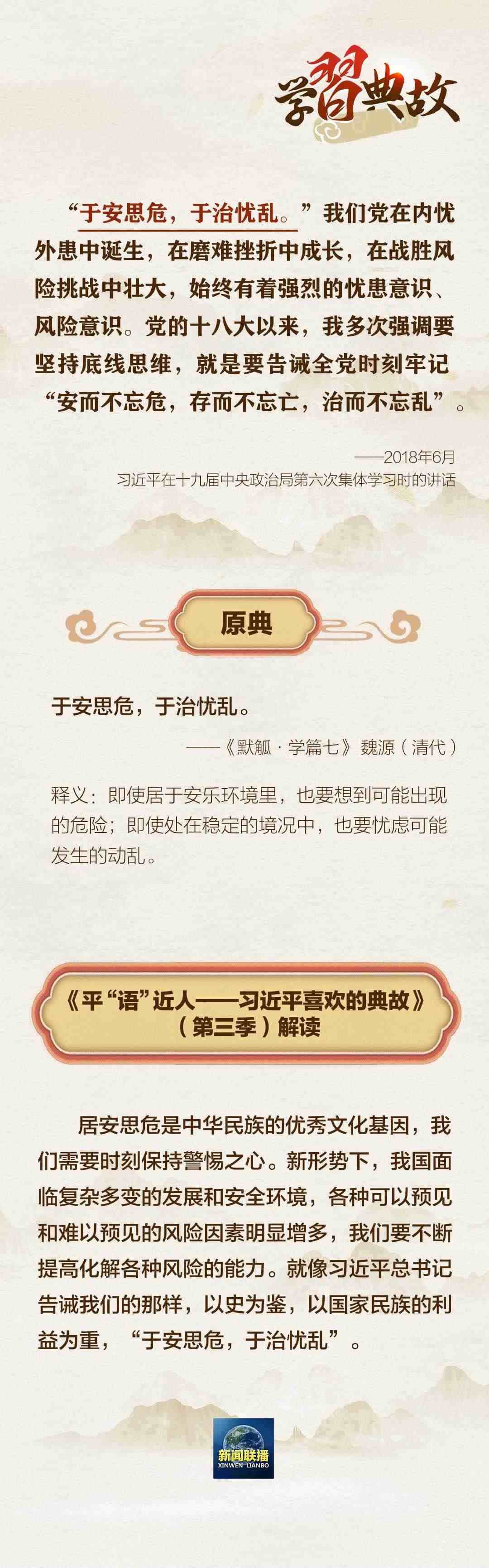 黨的二十大報告中,習(xí)近平總書記指出,國家安全是民族復(fù)興的根基,社會穩(wěn)定是國家強盛的前提。必須堅定不移貫徹總體國家安全觀,把維護國家安全貫穿黨和國家工作各方面全過程,確保國家安全和社會穩(wěn)定。圍繞“國家安全”這一主題,總書記曾講到哪些典故?一起學(xué)習(xí)↓↓↓