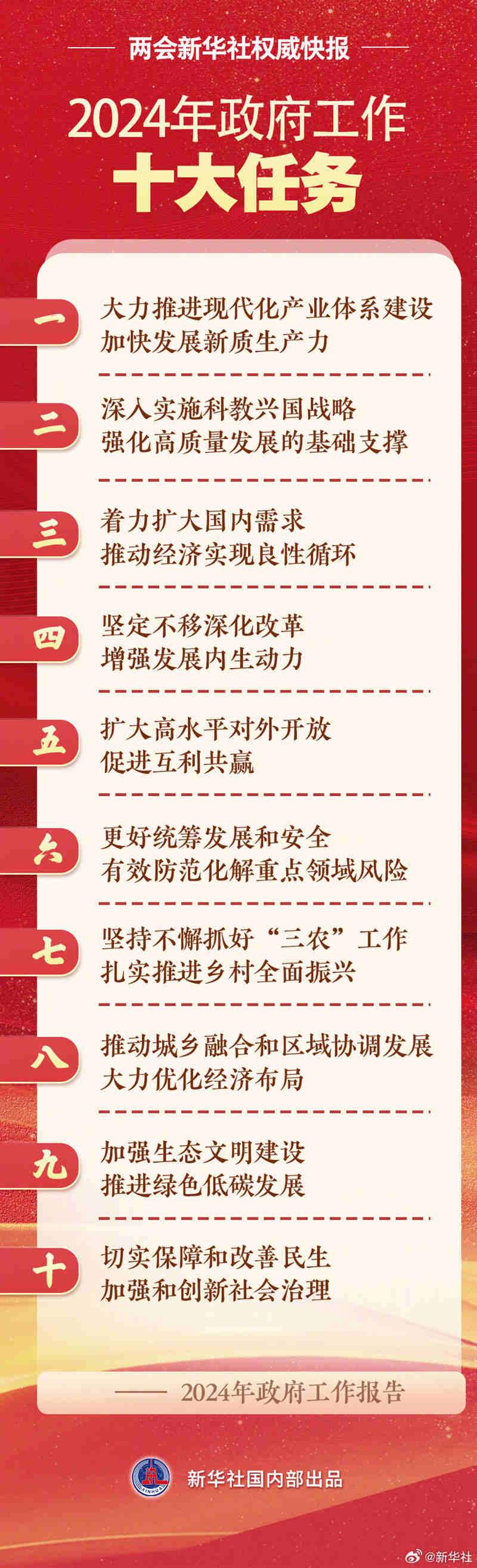 兩會新華社權(quán)威快報丨2024年政府工作十大任務