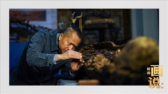 △安鄉(xiāng)潘氏藝術木雕傳承人潘能輝在繪制手稿。