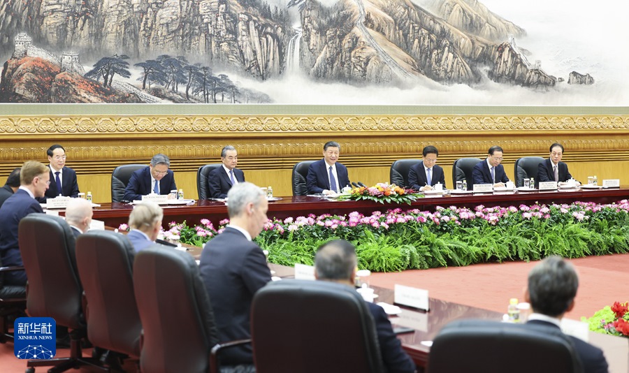 ??3月27日,國(guó)家主席習(xí)近平在北京人民大會(huì)堂集體會(huì)見(jiàn)美國(guó)工商界和戰(zhàn)略學(xué)術(shù)界代表。新華社記者 申宏 攝