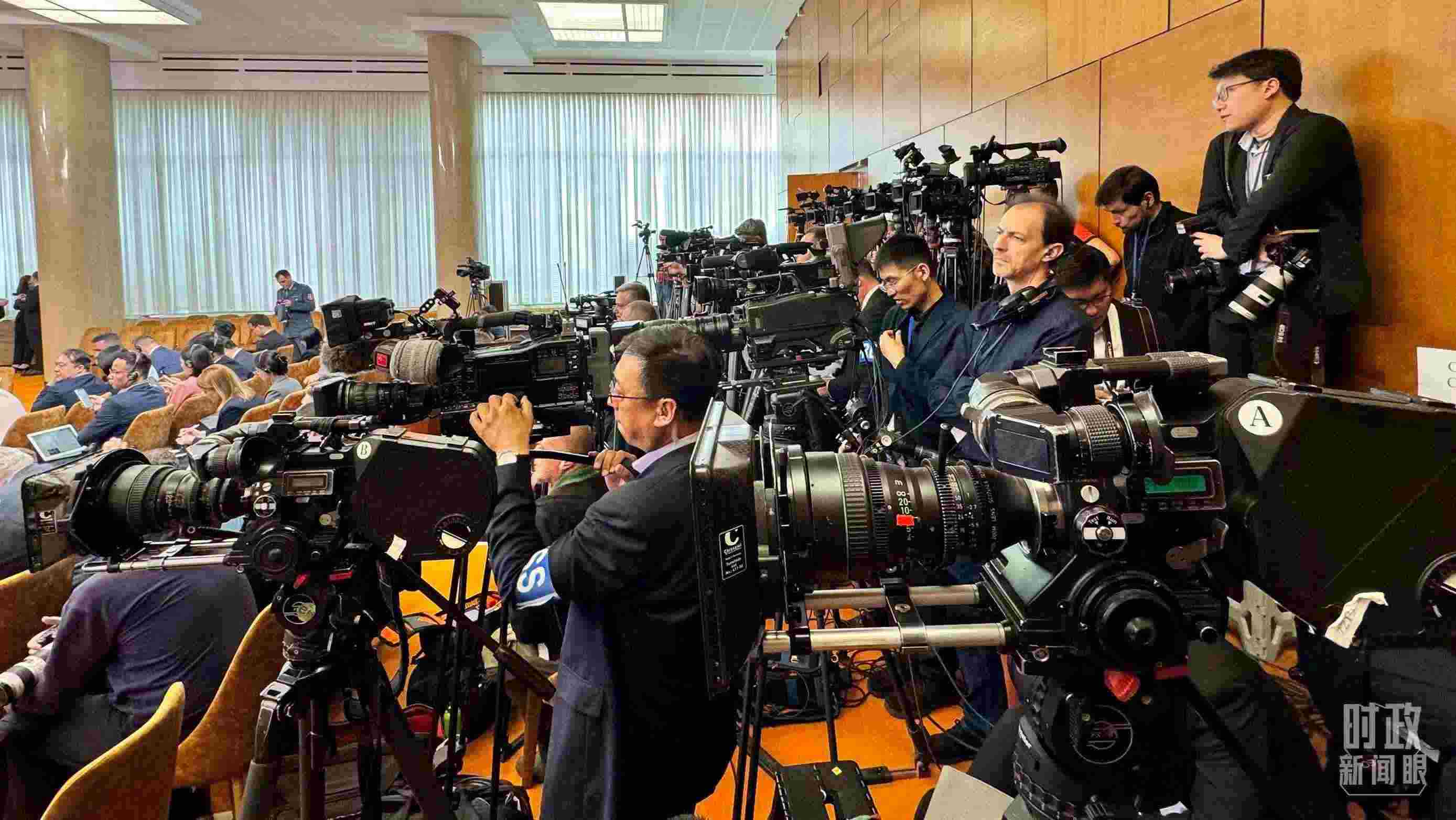 △這是中塞兩國(guó)元首共見(jiàn)記者開(kāi)始前的現(xiàn)場(chǎng),記者云集。(總臺(tái)央視記者李增仁拍攝)
