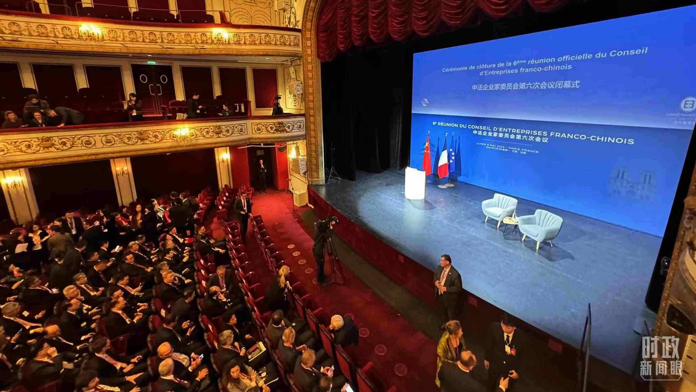 △中法企業(yè)家委員會(huì)第六次會(huì)議閉幕式開(kāi)始前的現(xiàn)場(chǎng)。(總臺(tái)央視記者蔣碩拍攝)
