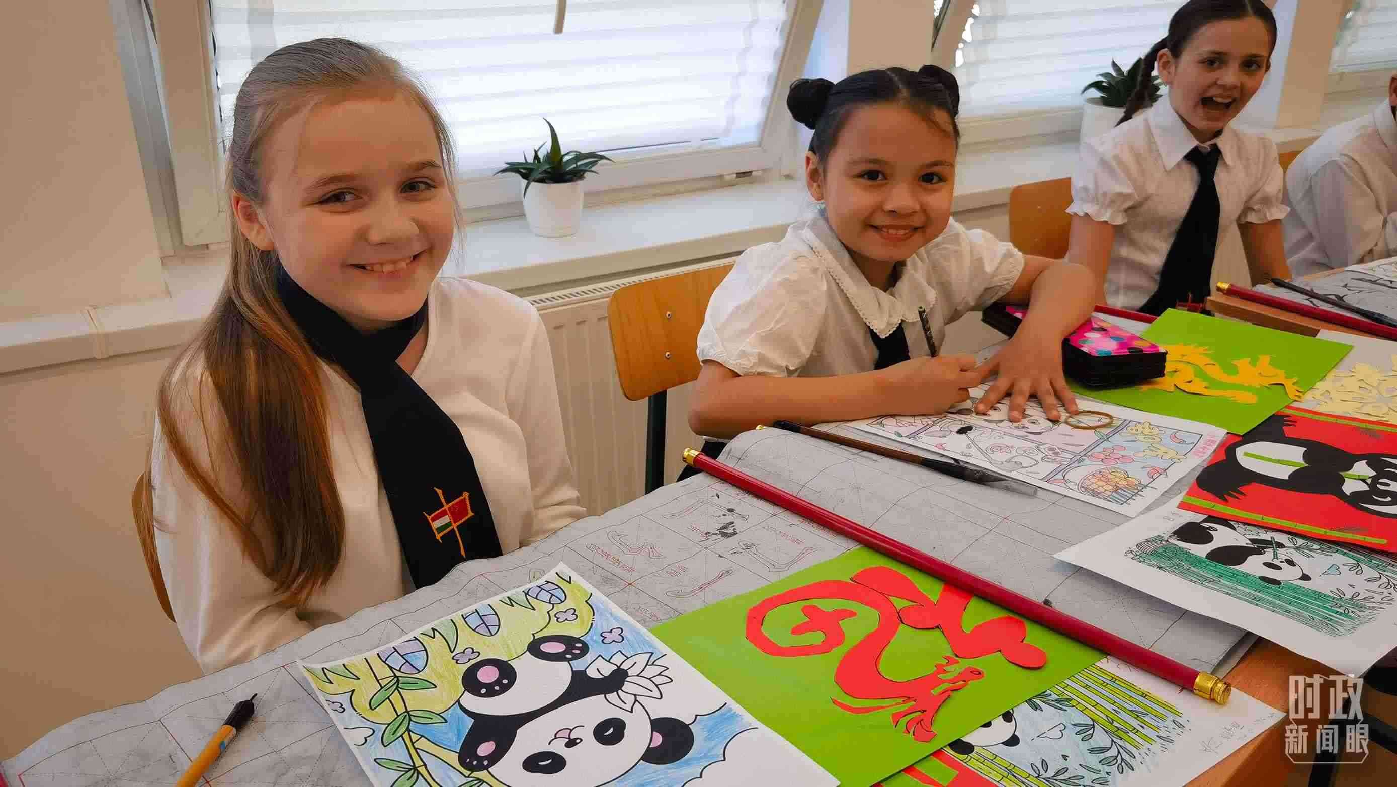 △匈中雙語學(xué)校中國(guó)傳統(tǒng)文化課堂上的孩子們。(總臺(tái)央視記者凌楓拍攝)
