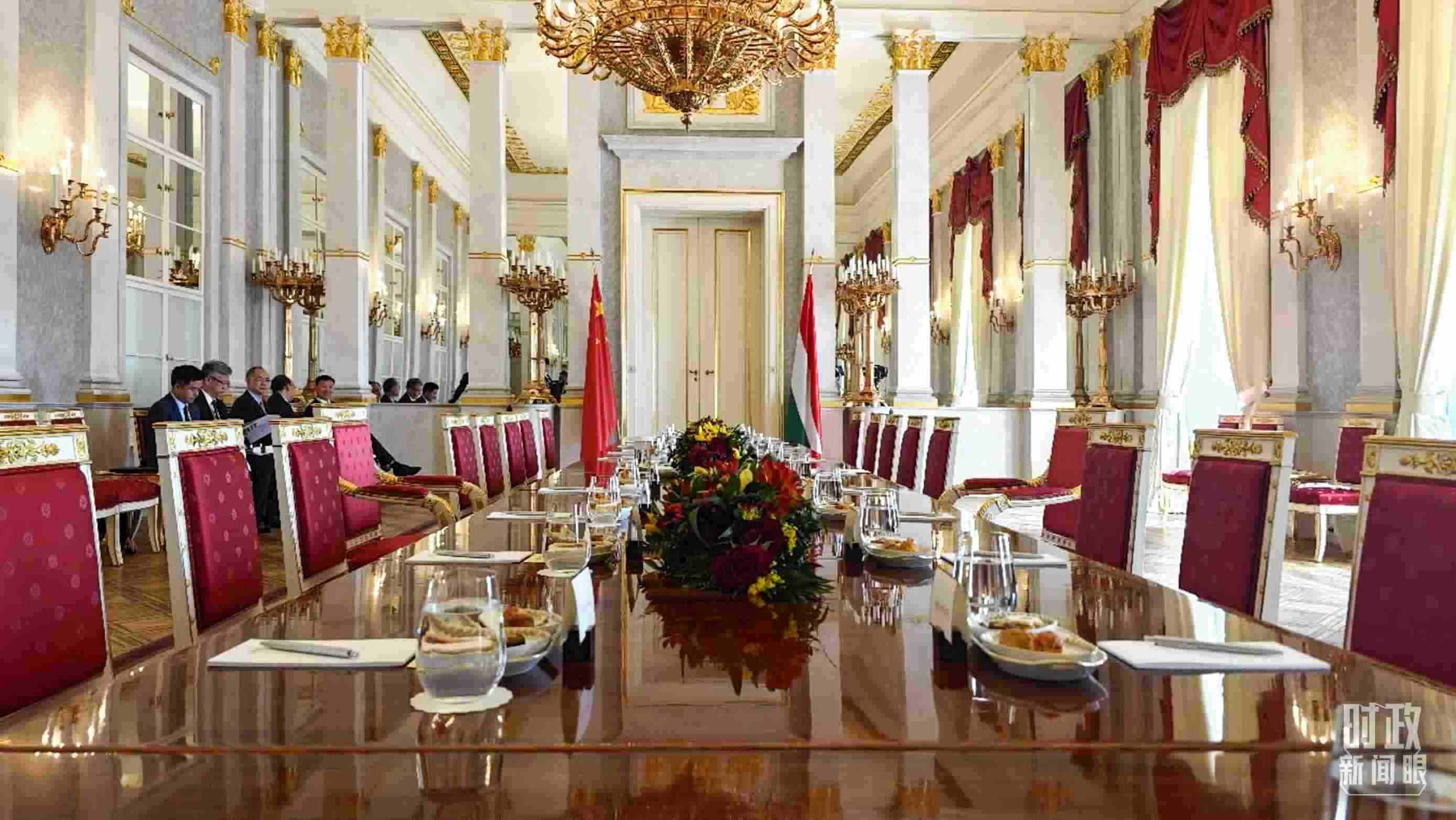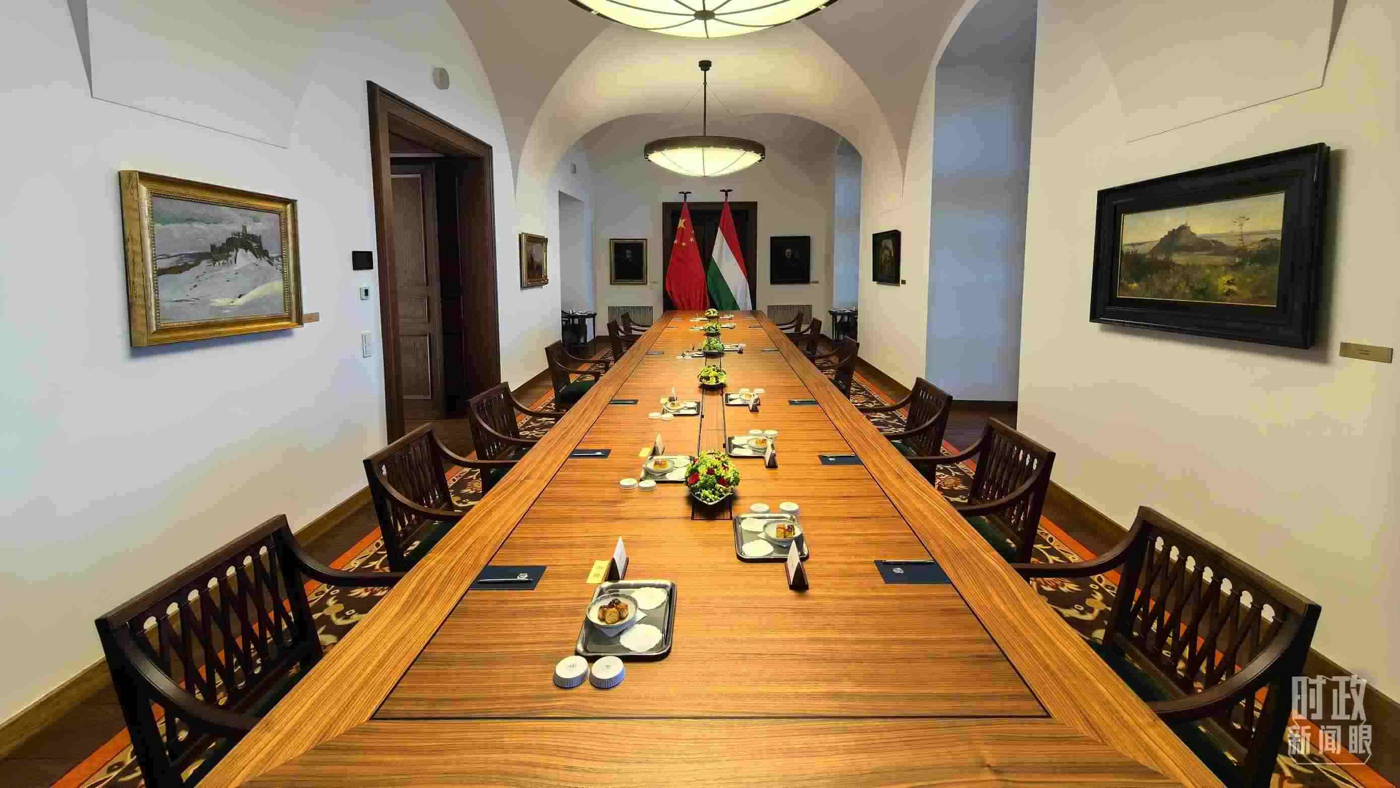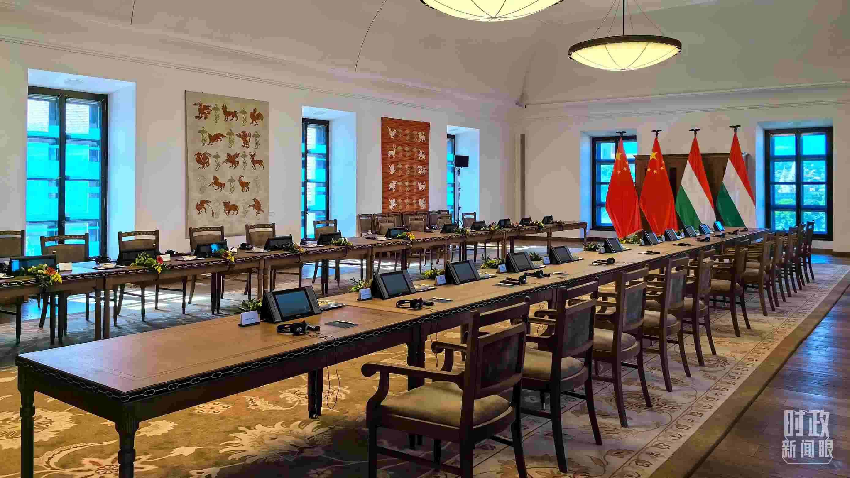 △習(xí)主席和歐爾班總理在這里舉行大范圍會(huì)談。這是會(huì)談開始前的現(xiàn)場(chǎng)。(總臺(tái)央視記者陸泓宇拍攝)