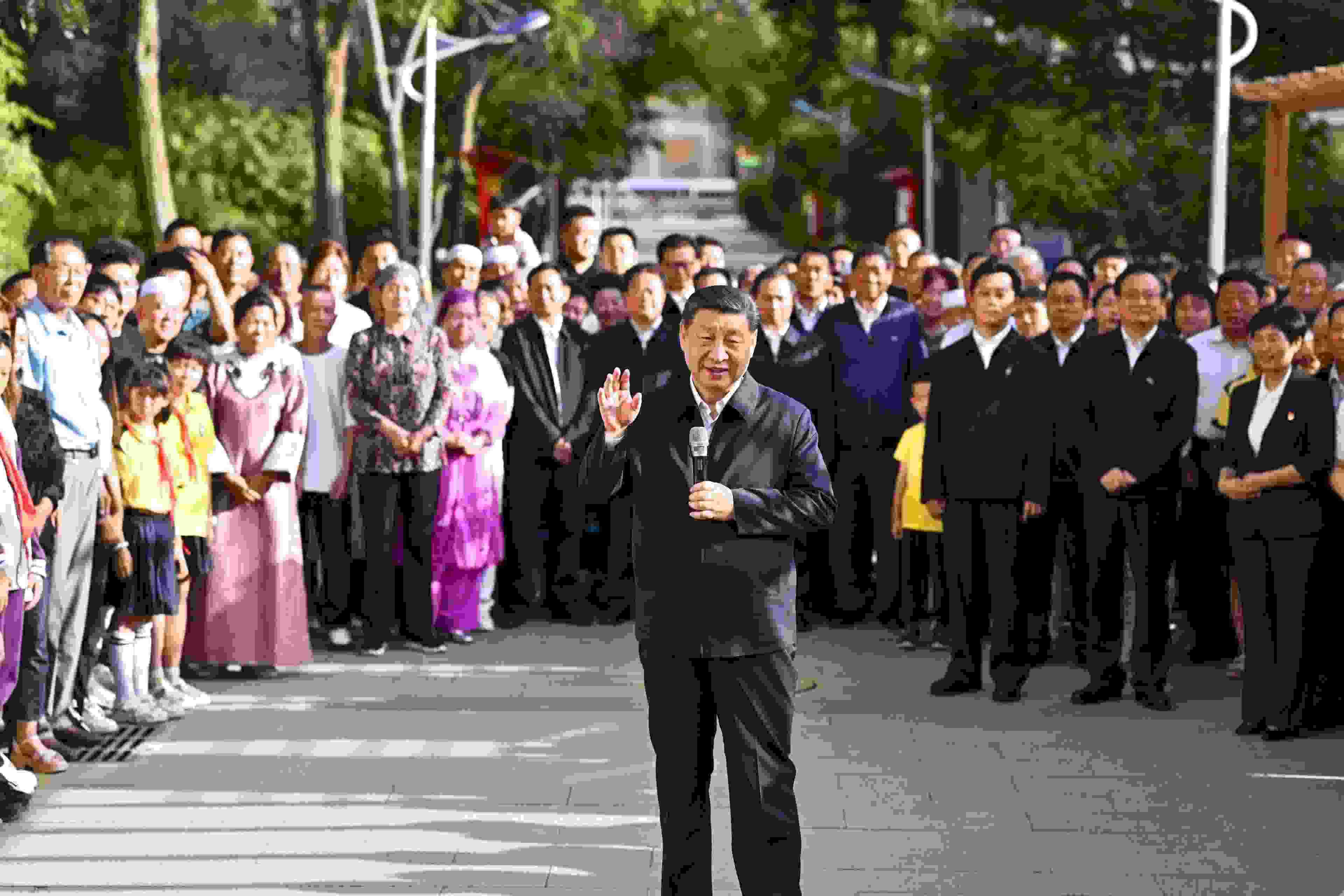 19日下午,習(xí)近平總書記來到寧夏銀川市金鳳區(qū)長城花園社區(qū)考察??吹竭@個多民族聚居的社區(qū)其樂融融,各族群眾和睦相處、生活幸福,習(xí)近平十分高興。他說,民族團結(jié)非常重要,我們五十六個民族要像石榴籽一樣緊緊抱在一起。五十六個民族凝聚在一起就是中華民族共同體,中華民族是一個大家庭。我們共同奮斗,一起推進中國式現(xiàn)代化,實現(xiàn)中華民族偉大復(fù)興!(杜尚澤)