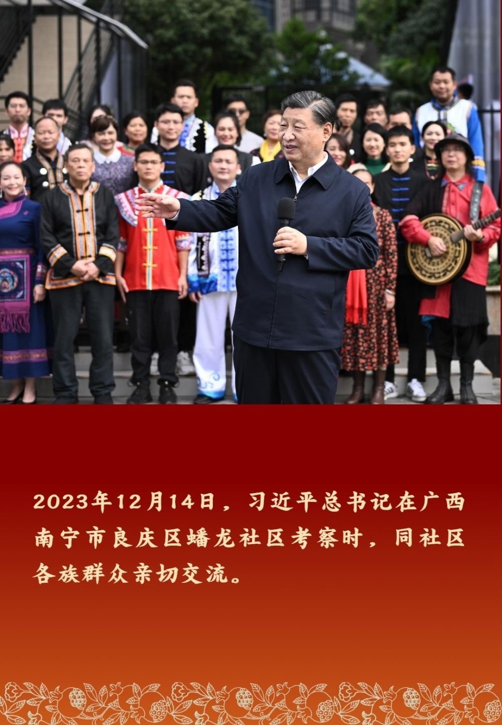 以習近平同志為核心的黨中央高度重視民族工作,十分關心少數民族群眾。習近平總書記多次深入民族地區(qū)考察調研,同各族群眾親切交流,勉勵大家鑄牢中華民族共同體意識,像石榴籽那樣緊緊抱在一起。