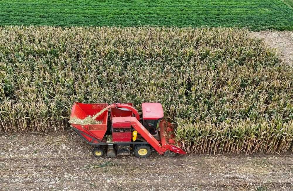 玉米秸稈則被粉碎回收,劉明坤說,合作社養(yǎng)殖了5000余頭豬和1000余頭西門塔爾牛,玉米秸稈正好轉(zhuǎn)化為發(fā)酵飼料,而動物糞便腐熟處理后再用于肥田,發(fā)展循環(huán)農(nóng)業(yè)。