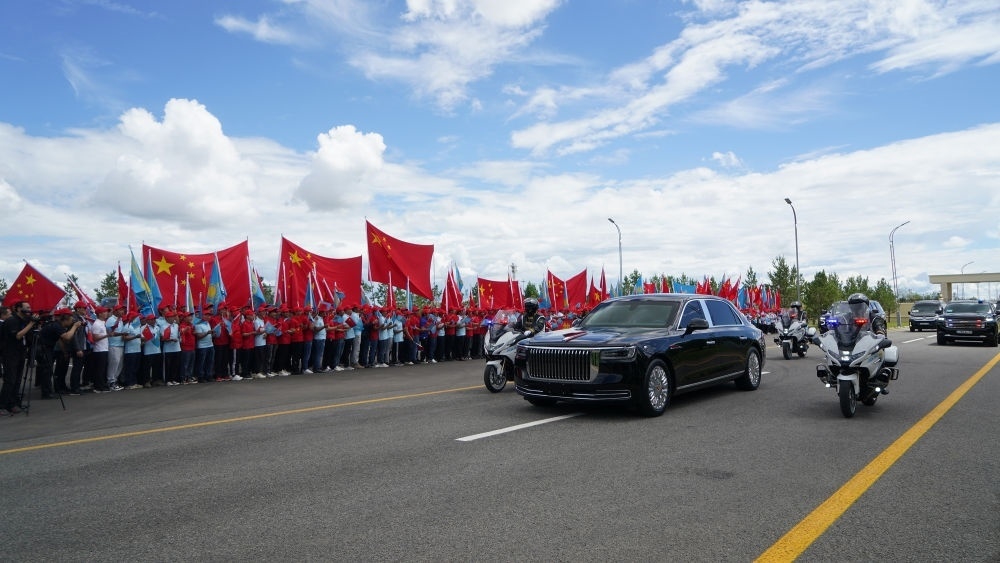 7月2日,國家主席習(xí)近平抵達(dá)阿斯塔納,出席上海合作組織成員國元首理事會第二十四次會議并對哈薩克斯坦進(jìn)行國事訪問。哈薩克斯坦總統(tǒng)托卡耶夫親自到機場迎接。