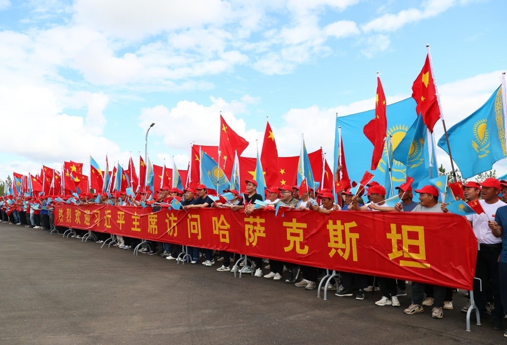 哈方在機場舉行隆重歡迎儀式,哈薩克斯坦少年兒童用中文演唱《歌唱祖國》。習(xí)近平乘車從機場赴下榻飯店途中,當(dāng)?shù)刂匈Y企業(yè)代表等候在道路兩旁,揮舞中哈兩國國旗,高舉“熱烈歡迎習(xí)近平主席訪問哈薩克斯坦”等紅色橫幅,熱烈歡迎習(xí)近平主席到訪。