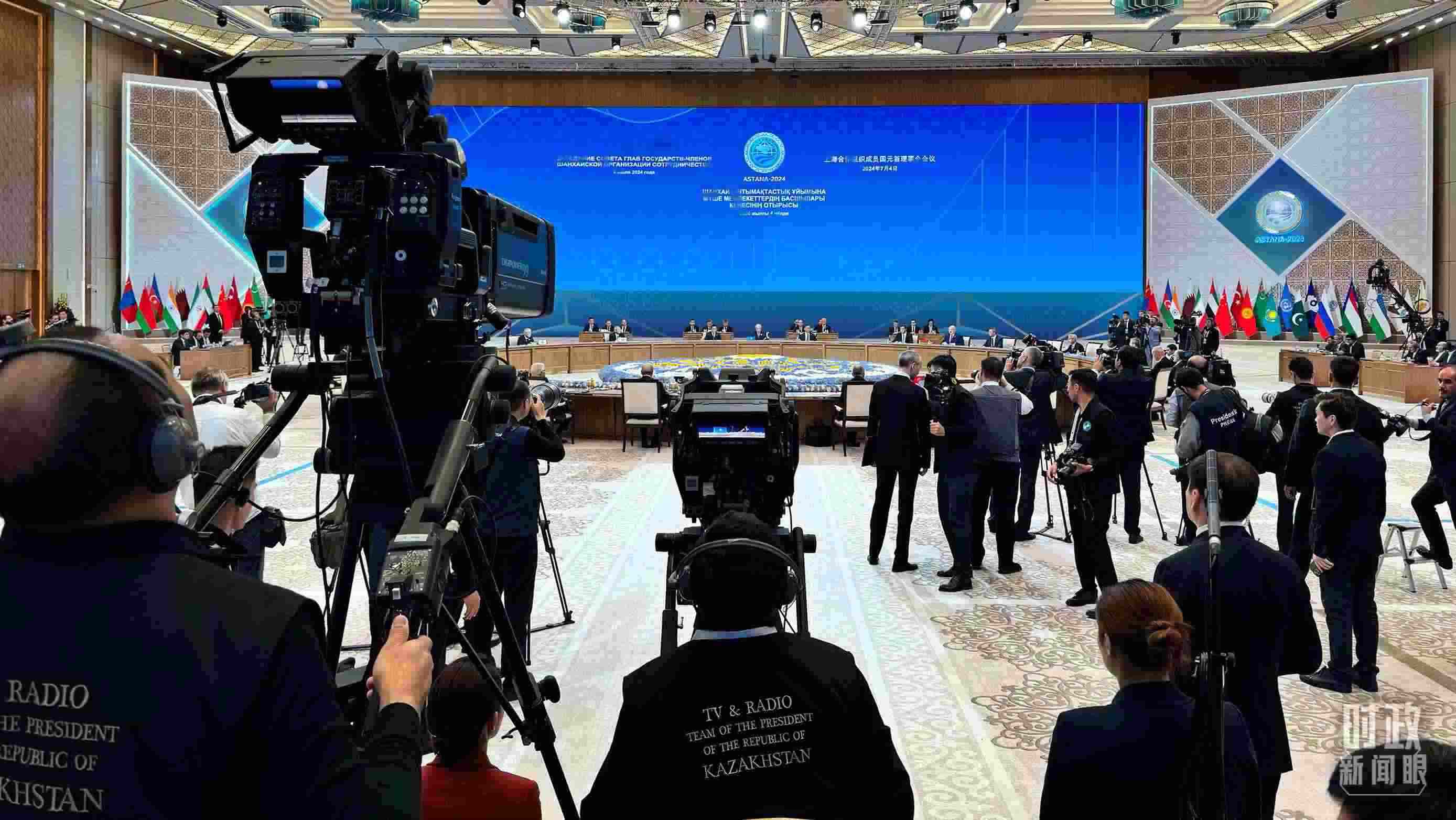 △當(dāng)天下午,“上海合作組織+”阿斯塔納峰會(huì)在這里舉行,這是會(huì)議開(kāi)始前。(總臺(tái)央視記者石丞拍攝)