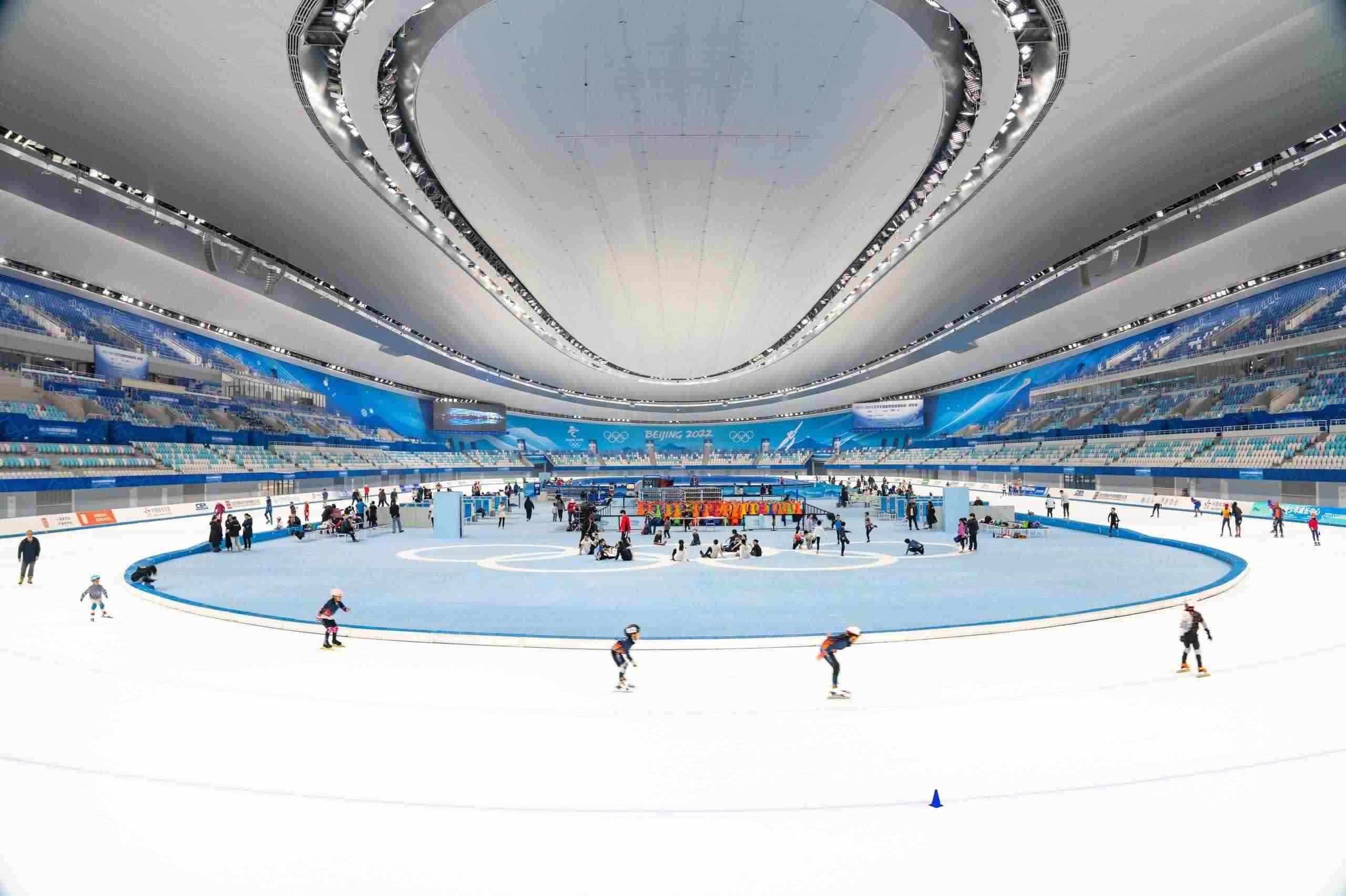 △2024年4月27日,滑冰愛(ài)好者和市民在北京國(guó)家速滑館參加滑冰運(yùn)動(dòng)。
