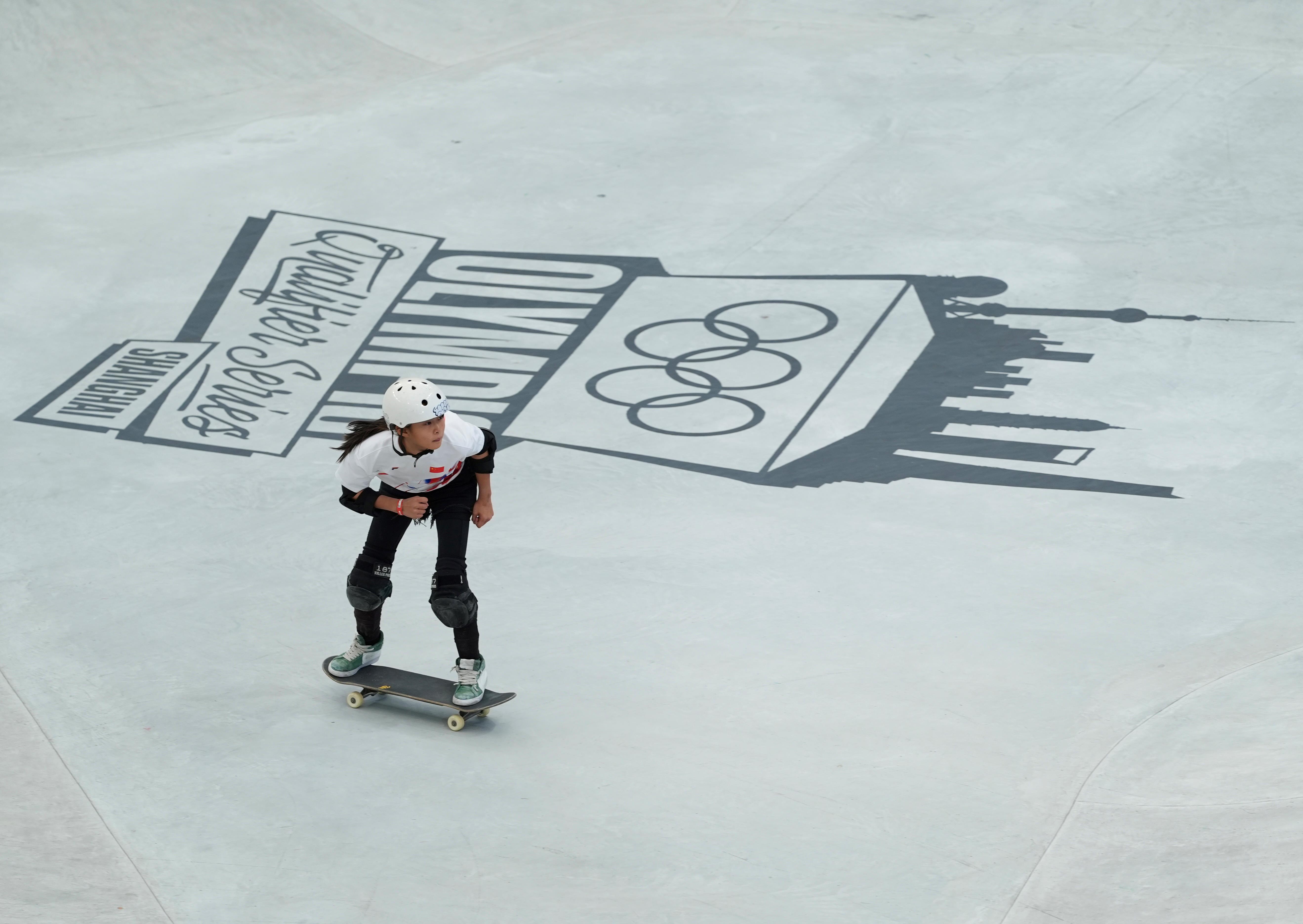 △2024年5月16日,中國(guó)選手鄭好好出戰(zhàn)2024巴黎奧運(yùn)會(huì)滑板女子碗池資格賽。