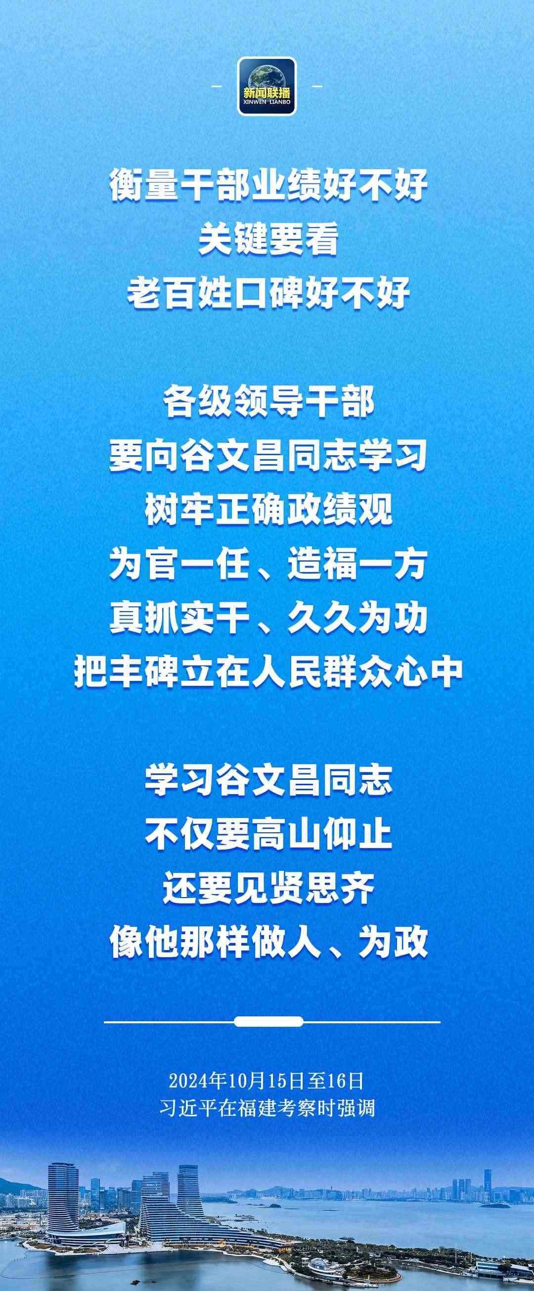 福建這片熱土孕育了許多先進(jìn)人物,谷文昌同志就是一個(gè),我多次提到過他的事跡。他在東山縣工作了十五年,帶領(lǐng)全縣人民拼搏奮戰(zhàn),把一個(gè)荒漠化的孤島變成半島,并建成了海上綠洲,使群眾擺脫了世代逃荒要飯的苦日子,也為后來的發(fā)展打下了基礎(chǔ)。谷文昌同志的事跡同焦裕祿、楊善洲同志的事跡一樣,展示了一名共產(chǎn)黨員和一名領(lǐng)導(dǎo)干部的堅(jiān)強(qiáng)黨性、遠(yuǎn)大理想、博大胸懷、高尚情操。