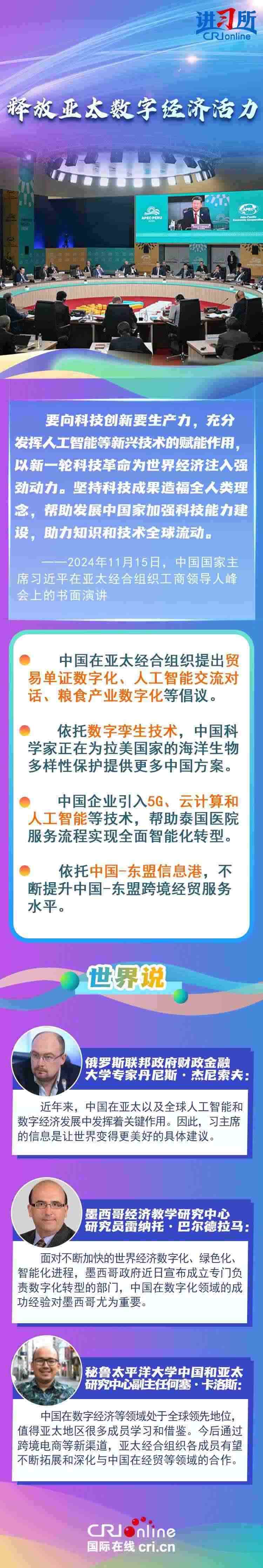 自1991年加入APEC以來(lái),中國(guó)作為關(guān)鍵一員,持續(xù)為亞太地區(qū)成為世界經(jīng)濟(jì)的“火車頭”輸出關(guān)鍵穩(wěn)定力量,習(xí)近平主席表示,“落其實(shí)者思其樹(shù),飲其流者懷其源”。中國(guó)的發(fā)展離不開(kāi)亞太,也將進(jìn)一步造福亞太。多國(guó)人士表示,在中國(guó)的帶動(dòng)和引領(lǐng)下,發(fā)展中國(guó)家有了更好的發(fā)展機(jī)會(huì),看到了更加光明的未來(lái)。