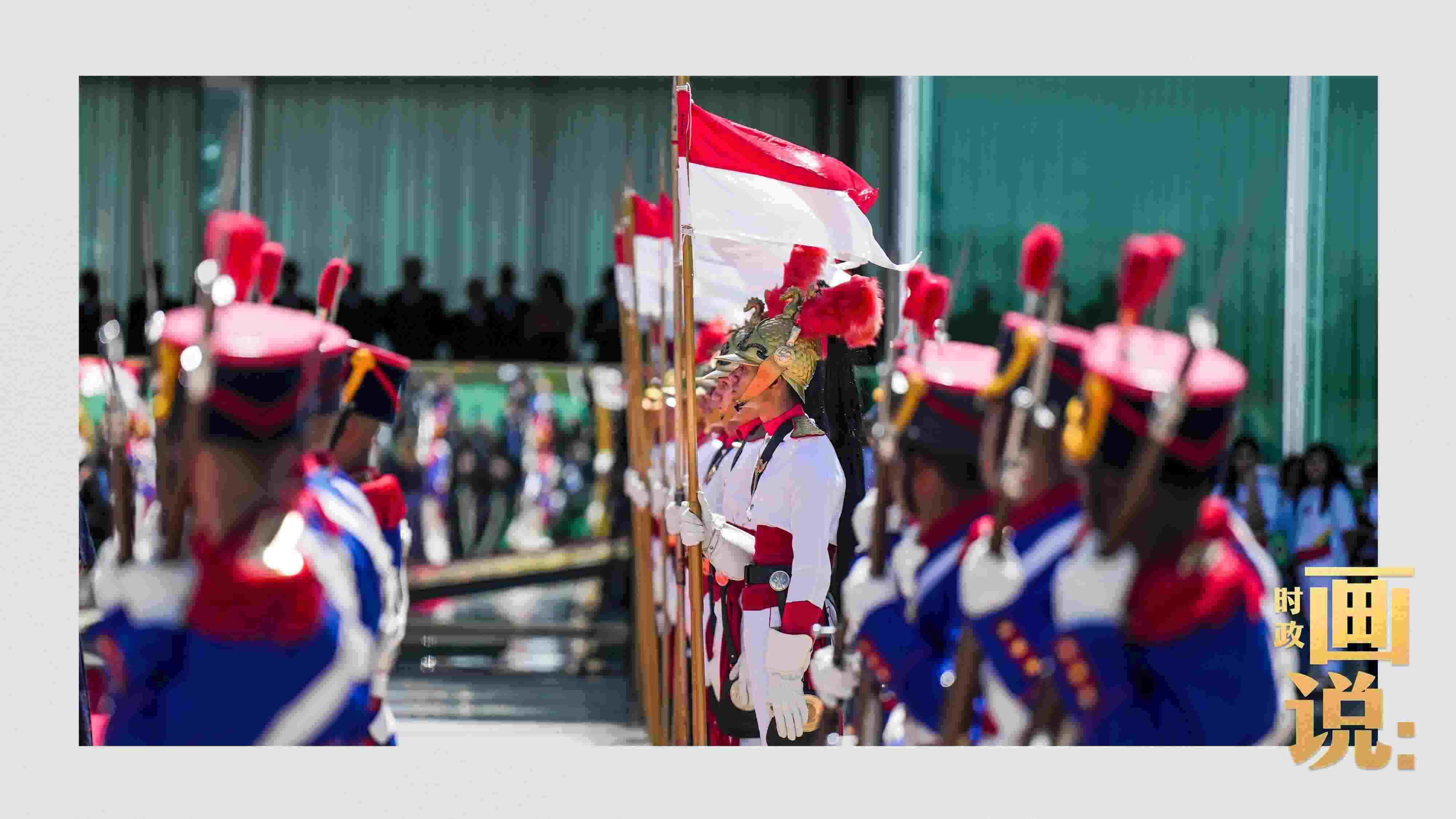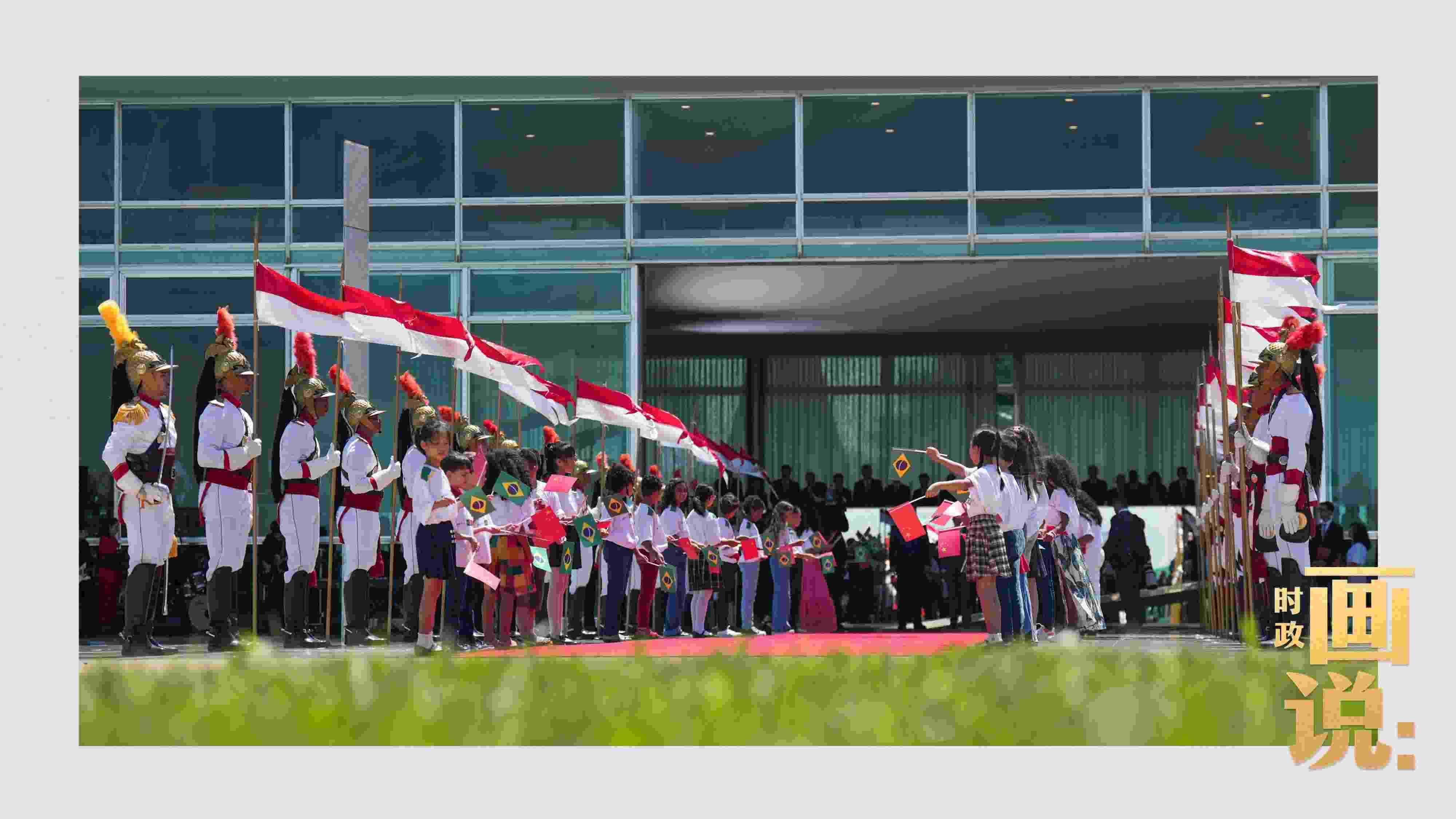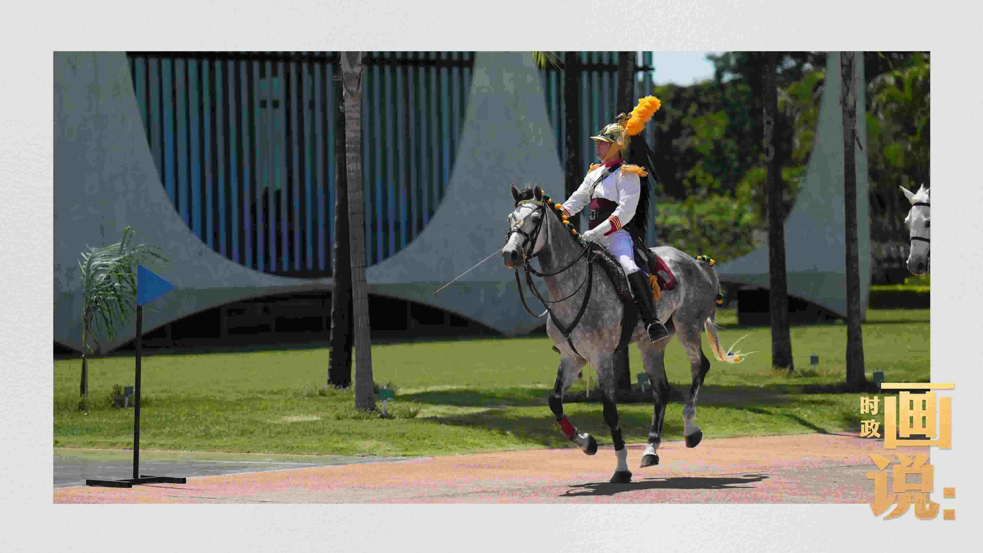 騎兵護(hù)衛(wèi)習(xí)近平主席專車抵達(dá)儀式現(xiàn)場(chǎng),巴西藝術(shù)家用中文深情唱響中國(guó)經(jīng)典民歌《我的祖國(guó)》,現(xiàn)場(chǎng)氣氛隆重?zé)崃摇?/p>