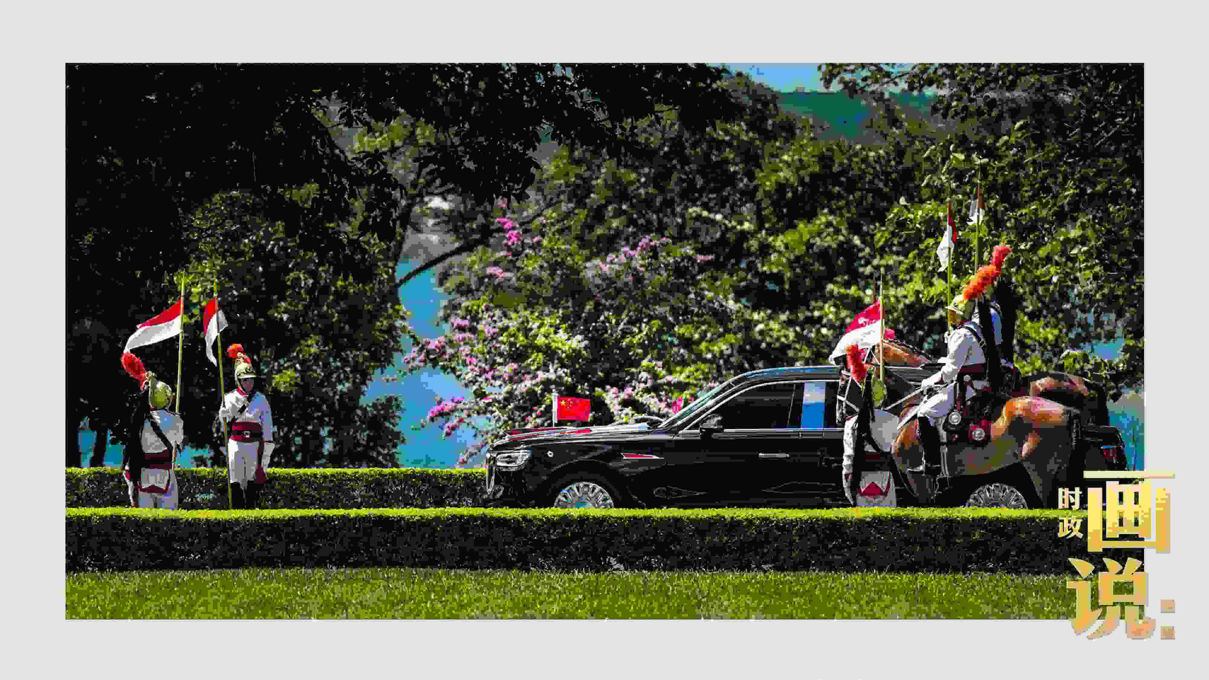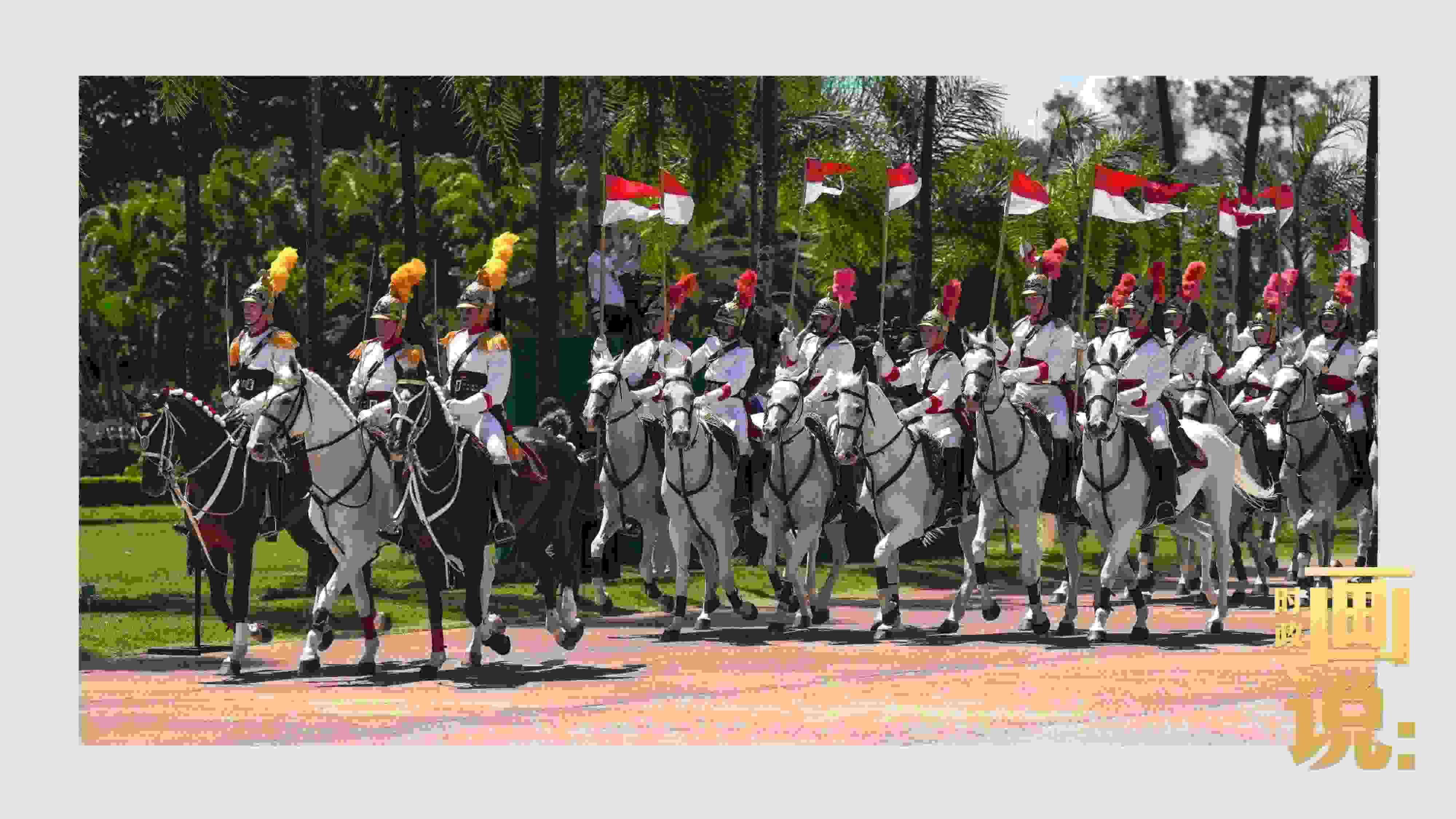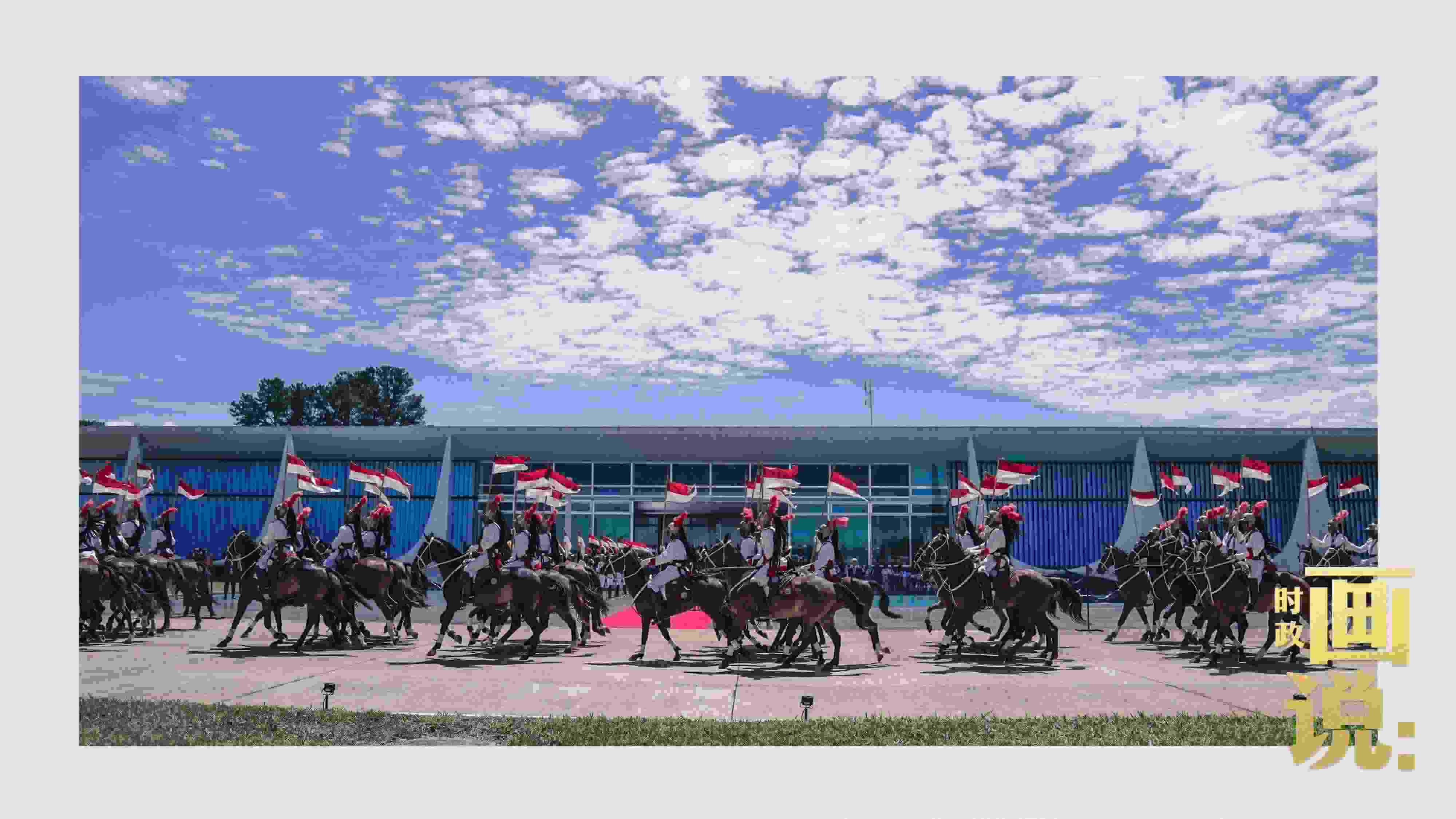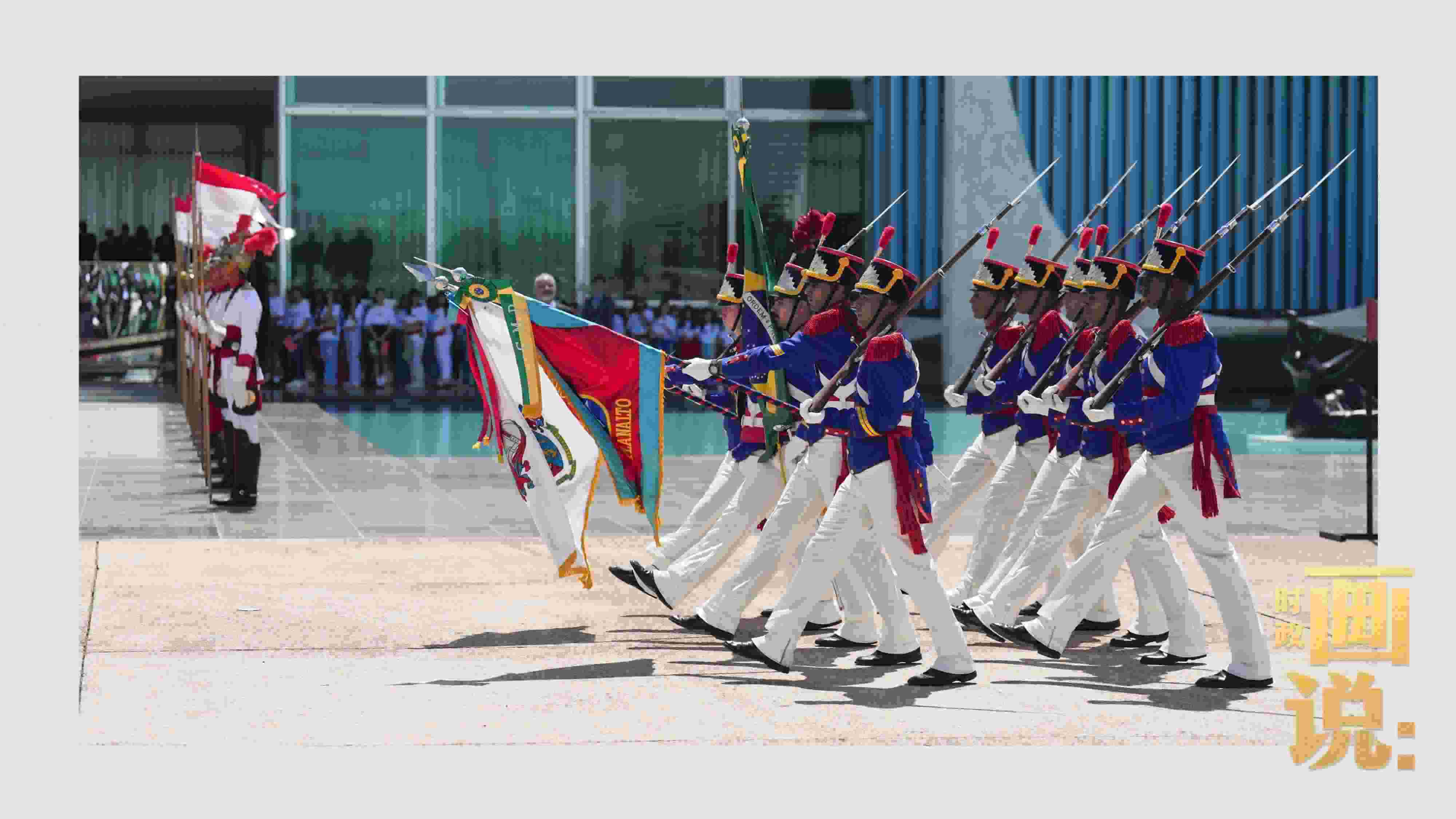 騎兵護(hù)衛(wèi)習(xí)近平主席專車抵達(dá)儀式現(xiàn)場(chǎng),巴西藝術(shù)家用中文深情唱響中國(guó)經(jīng)典民歌《我的祖國(guó)》,現(xiàn)場(chǎng)氣氛隆重?zé)崃摇?/p>
