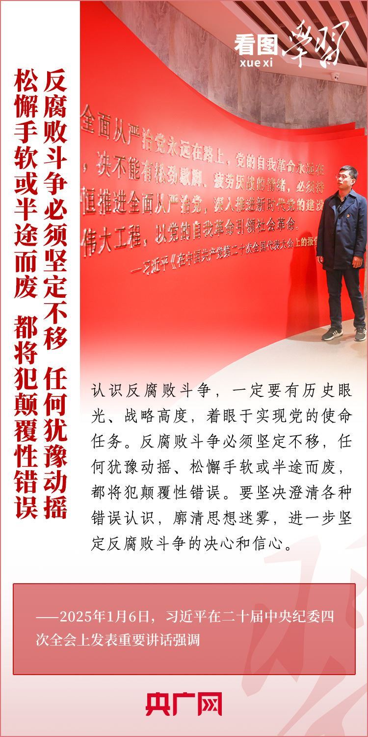 1月6日,習(xí)近平總書記在二十屆中央紀(jì)委四次全會上發(fā)表重要講話,充分肯定過去一年全面從嚴(yán)治黨取得的新進展、新成效,深刻分析當(dāng)前反腐敗斗爭形勢,對堅決打好反腐敗斗爭攻堅戰(zhàn)、持久戰(zhàn)、總體戰(zhàn)提出明確要求??倳洀娬{(diào),新時代新征程,必須堅持用改革精神和嚴(yán)的標(biāo)準(zhǔn)管黨治黨,努力取得更大成效,確保黨的二十大和二十屆三中全會部署落地落實,確保黨始終成為中國特色社會主義事業(yè)的堅強領(lǐng)導(dǎo)核心,推動中國式現(xiàn)代化行穩(wěn)致遠。一起來學(xué)習(xí)!
