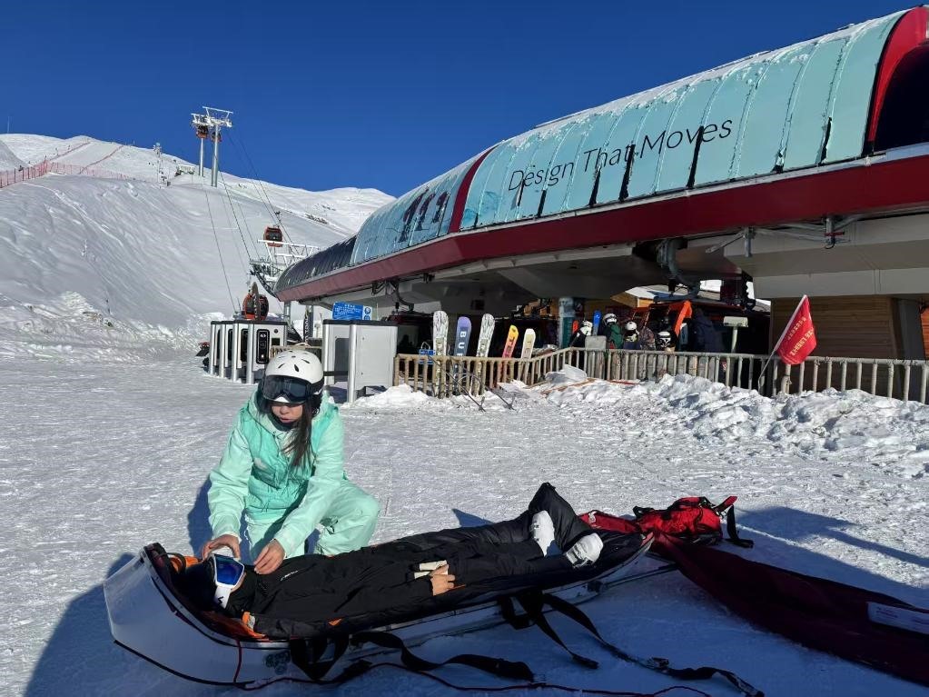 一次巡邏時,帕提曼看到一名雪友橫躺在雪道中間,雪板被甩出很遠,上前查看后發(fā)現(xiàn)其大腿骨折。她立即進行夾板固定、紗布包扎等操作,隨后協(xié)助轉運傷員。