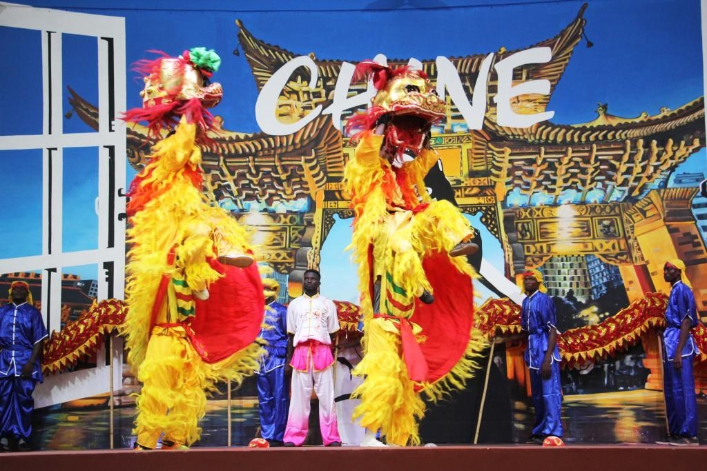 △當(dāng)?shù)貢r(shí)間1月25日,在貝寧科托努的貝寧中國(guó)文化中心,演員在表演舞獅慶祝春節(jié)。
