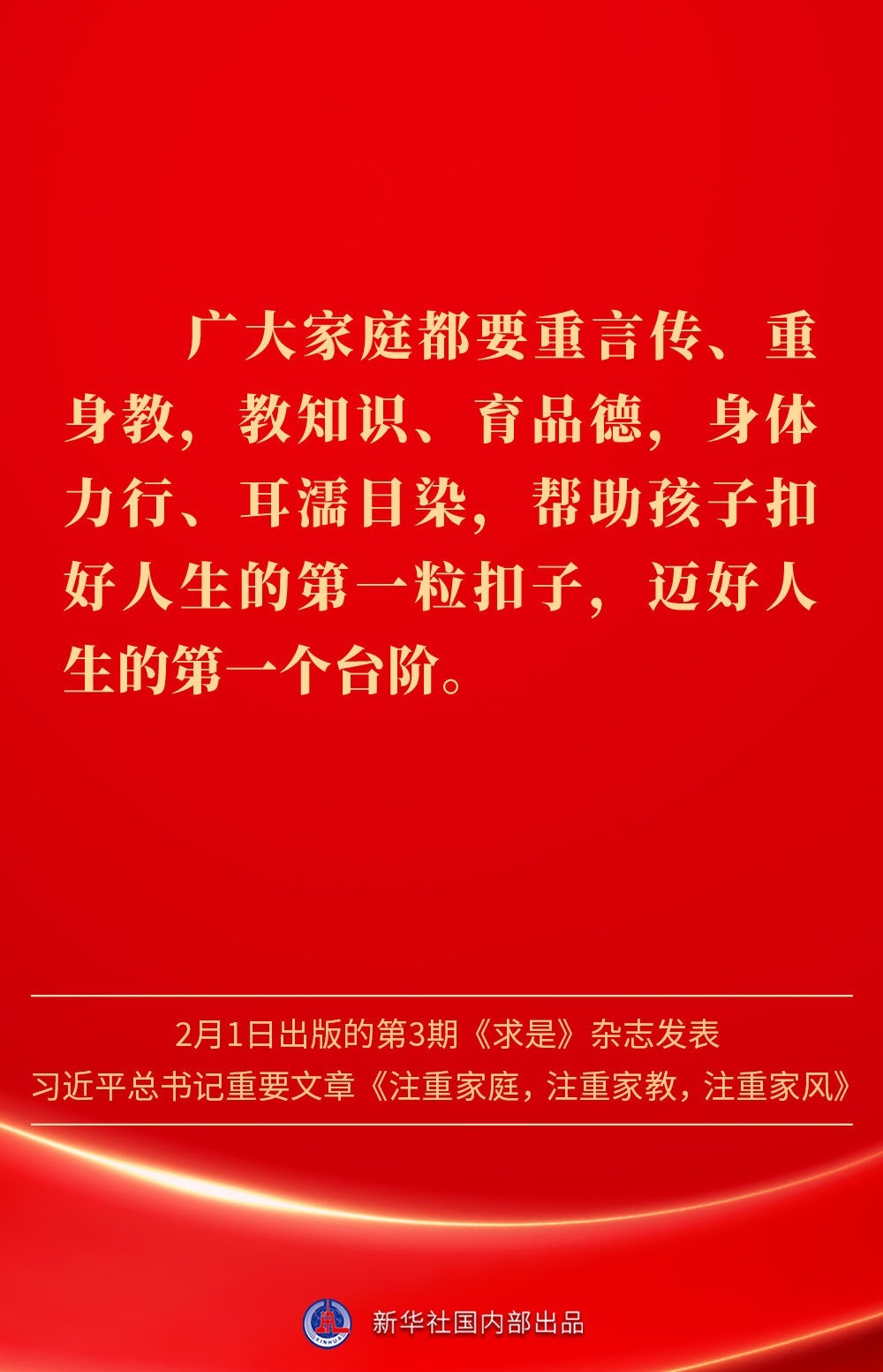 萬家團圓共慶新春佳節(jié)之際,2月1日出版的第3期《求是》雜志發(fā)表習近平總書記重要文章《注重家庭,注重家教,注重家風》。為什么要注重家庭、家教、家風?如何做好家庭文明建設?習近平總書記這樣闡述——