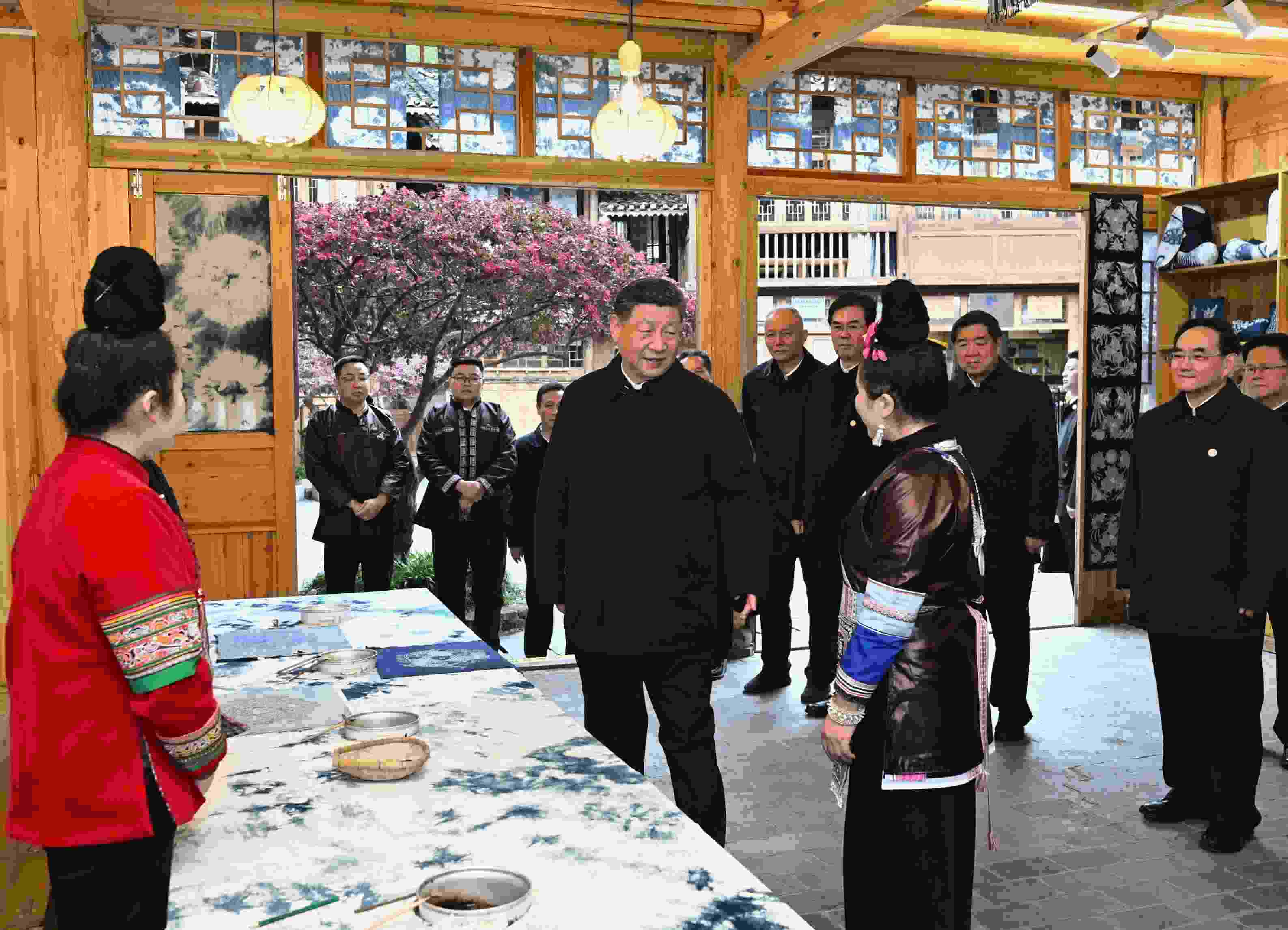 “從你們的講述、你們的神情可以看出,村寨這些年欣欣向榮?!蓖闭甯刹亢痛迕翊韲诨鹛吝叄?xí)近平總書記說,“現(xiàn)在旅游是一個(gè)很大的產(chǎn)業(yè),鄉(xiāng)村旅游如火如荼,民族地區(qū)要保留自己的特色文化,在文旅融合中更加彰顯它的光彩?!?/p>