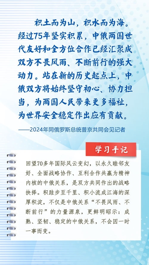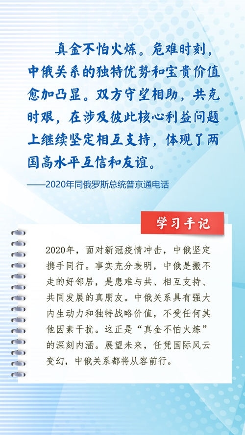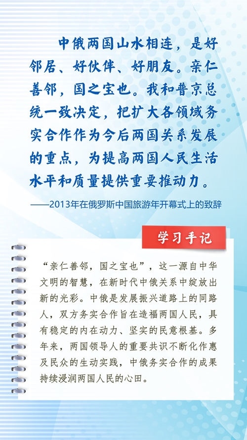 我們一起來學(xué)習(xí)品讀這些飽含哲思的論述,從中感悟新時(shí)代中俄關(guān)系在復(fù)雜的外部環(huán)境下堅(jiān)毅前行之道,感悟習(xí)近平主席作為大黨大國(guó)領(lǐng)袖、世界級(jí)領(lǐng)袖的時(shí)代擔(dān)當(dāng)與天下情懷。