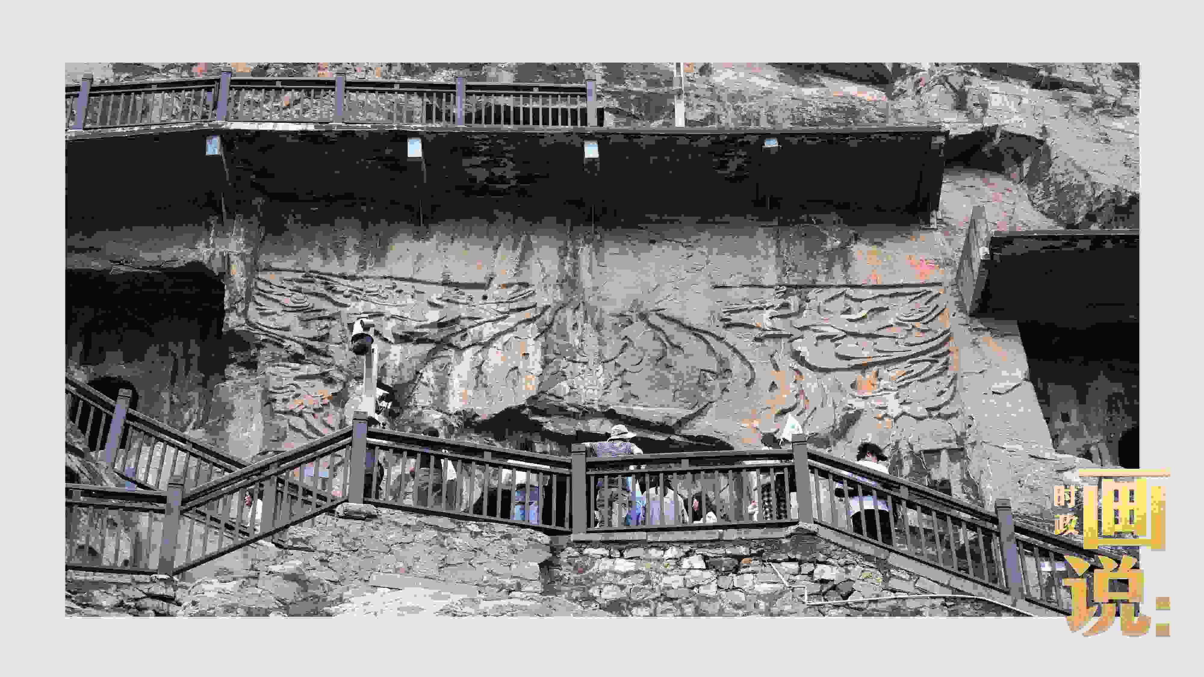 △工作人員在對石刻病害情況進行詳細記錄