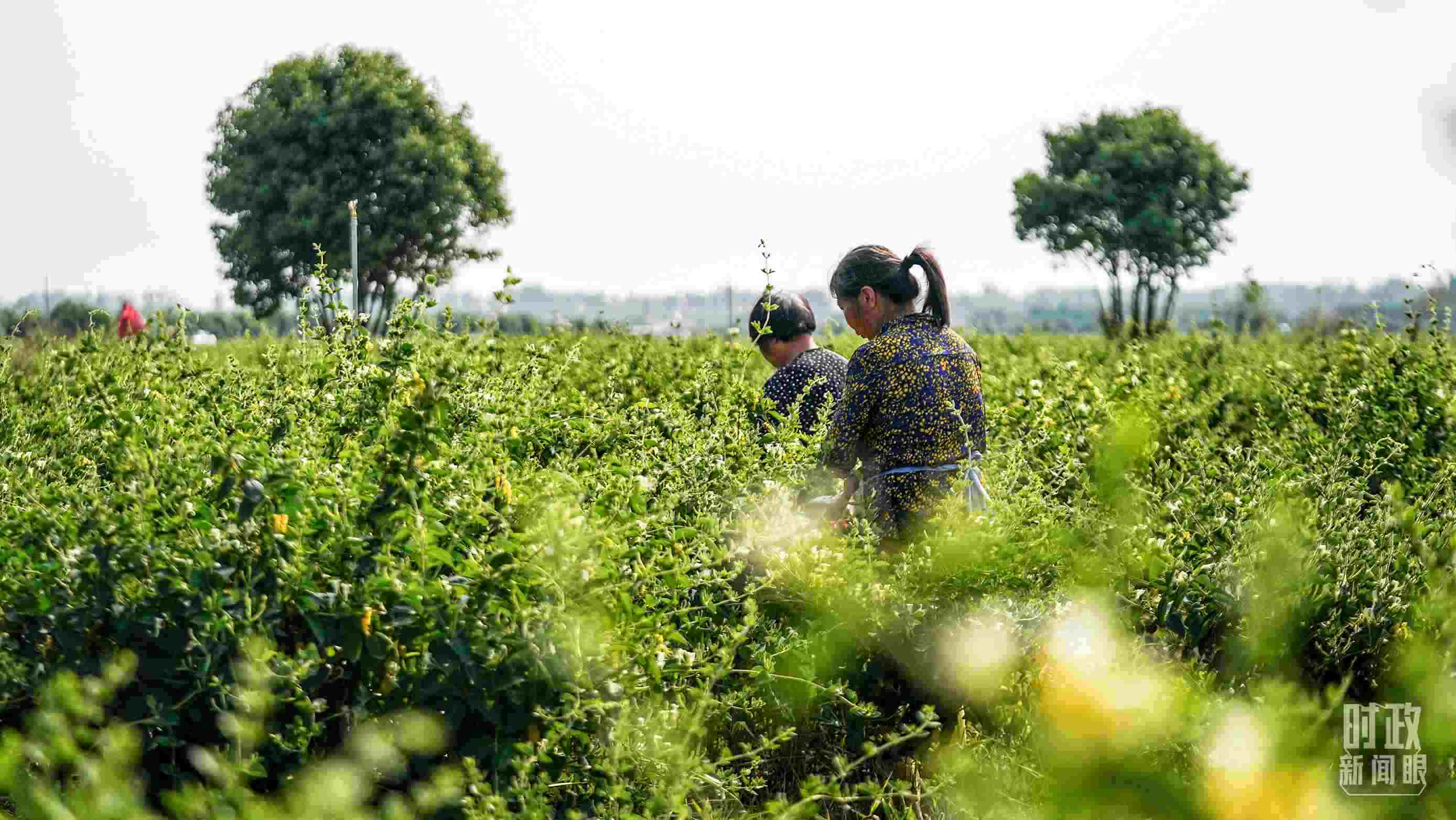 △五月,河南農(nóng)民采摘金銀花。(總臺國廣記者李晉拍攝)