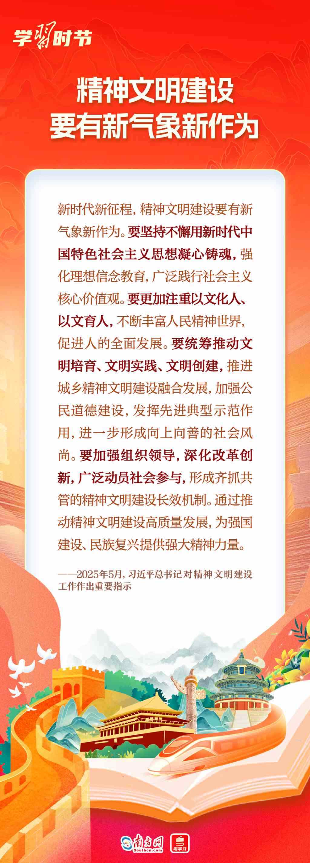5月23日,2025年全國精神文明建設(shè)表彰大會(huì)召開,會(huì)上傳達(dá)了習(xí)近平總書記對(duì)精神文明建設(shè)工作作出的重要指示。習(xí)近平總書記對(duì)精神文明建設(shè)工作有哪些最新指示?一起來學(xué)習(xí)!