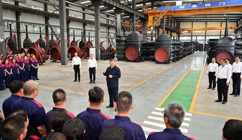 7月7日至8日,中共中央總書記、國(guó)家主席、中央軍委主席習(xí)近平在山西考察。這是7日下午,習(xí)近平在陽(yáng)泉閥門股份有限公司考察。新華社記者 謝環(huán)馳 攝