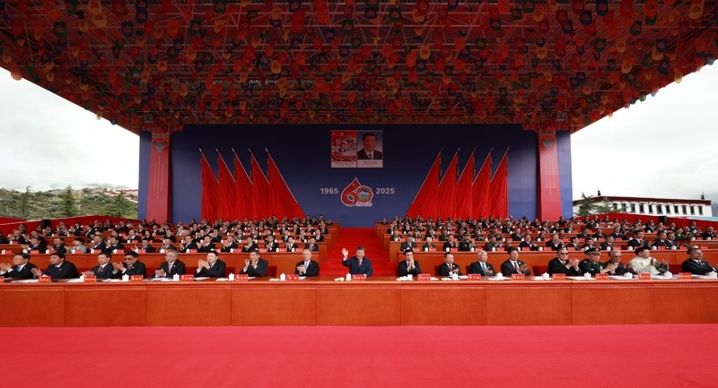 8月21日上午,西藏各族各界干部群眾約2萬人歡聚拉薩市布達拉宮廣場,熱烈慶祝西藏自治區(qū)成立60周年。中共中央總書記、國家主席、中央軍委主席習近平出席慶祝大會。王滬寧、蔡奇出席大會。