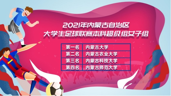 近年來,內蒙古校園足球蓬勃發(fā)展,多彩的校園足球賽事與活動呈現(xiàn)出不斷發(fā)展的生機與活力。作為全區(qū)舉辦規(guī)模最大、參賽人數(shù)最多、覆蓋面最廣、專為大學生量身打造的校園足球賽事,大學生足球聯(lián)賽成為我區(qū)各高校學子充分展示青春活力與頑強斗志的重要舞臺。2021年聯(lián)賽中,共設高職校園、高職超級、本科校園和本科超級組(男、女)共7個組別。錫林郭勒職業(yè)學院、包頭輕工職業(yè)技術學院、呼和浩特民族學院分別獲得高職校園男子組、女子組、超級男子組冠軍;內蒙古農業(yè)大學奪得本科校園男子、女子組冠軍;內蒙古科技大學、內蒙古大學分別奪得本科超級組男子、女子組冠軍。