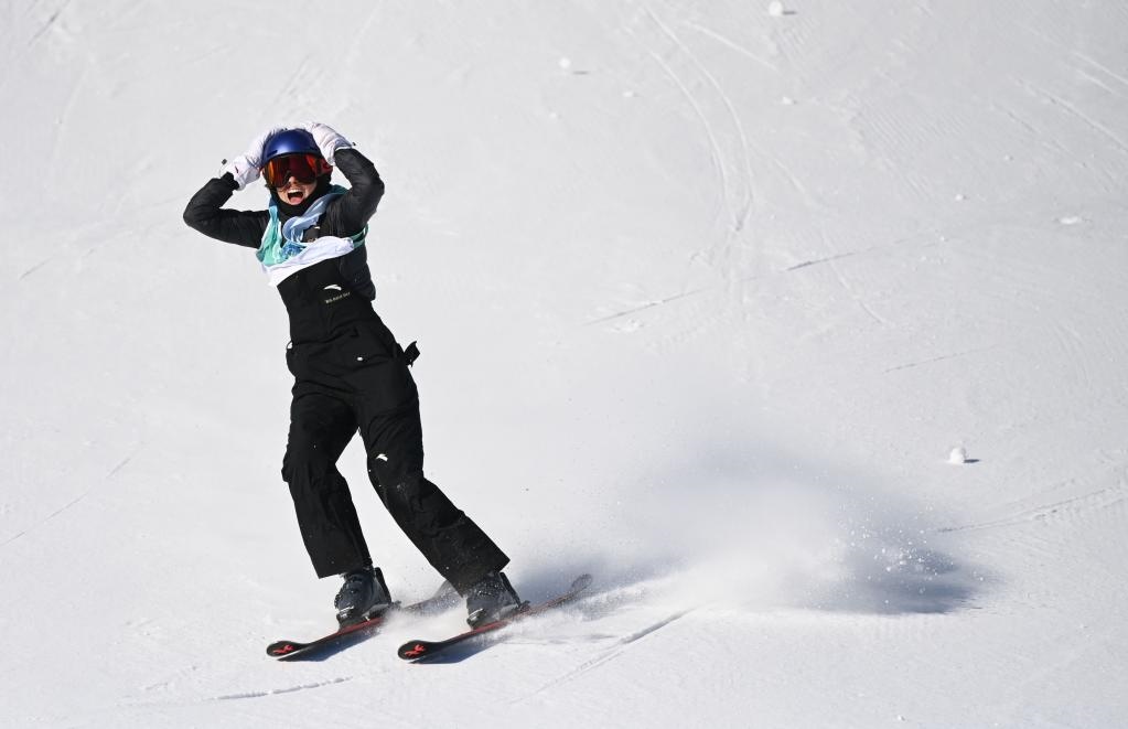 馭雪而馳、躍向藍(lán)天、翻轉(zhuǎn)兩周、轉(zhuǎn)體1620……3秒鐘后,穩(wěn)穩(wěn)落地,雪板激起的雪沫劃破全場緊張的寂靜,中國選手谷愛凌大聲尖叫,雙手抱頭,掩面而泣。2003年出生的她,用從未做出的超高難度動作成功挑戰(zhàn)第三跳,上演超級大逆轉(zhuǎn),在8日舉行的北京冬奧會自由式滑雪女子大跳臺決賽中摘得桂冠。