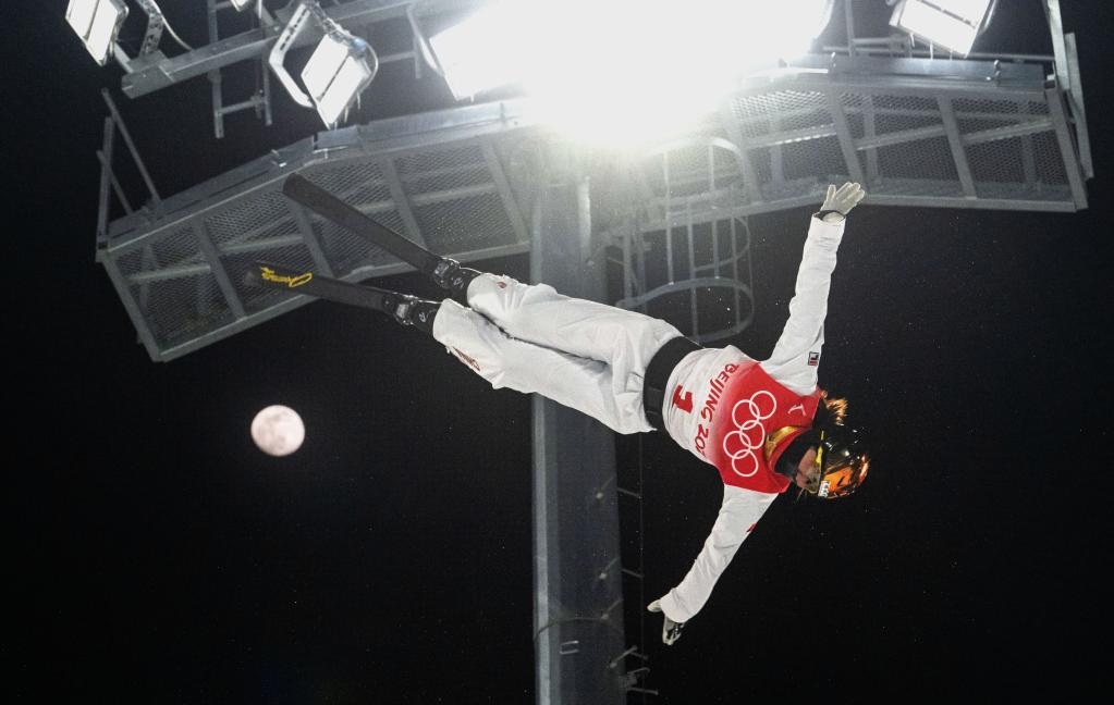 2月16日,中國(guó)隊(duì)選手齊廣璞在自由式滑雪男子空中技巧決賽中。新華社記者朱崢攝