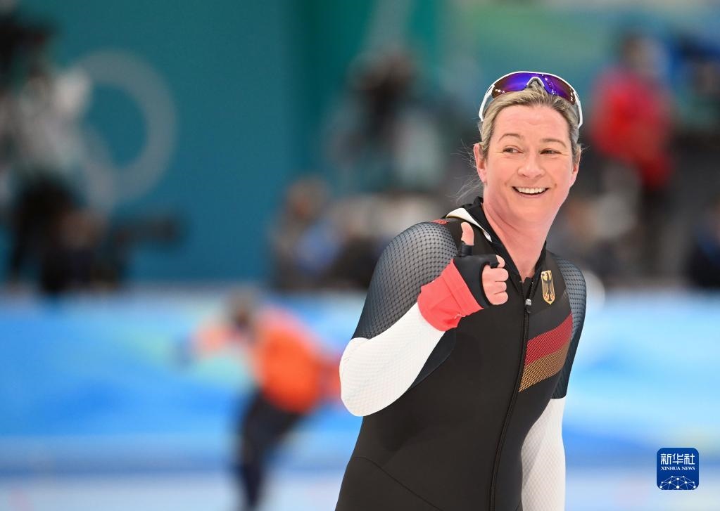 2月5日,德國(guó)隊(duì)選手克勞迪婭·佩希施泰因在速度滑冰女子3000米決賽后。新華社記者武巍攝