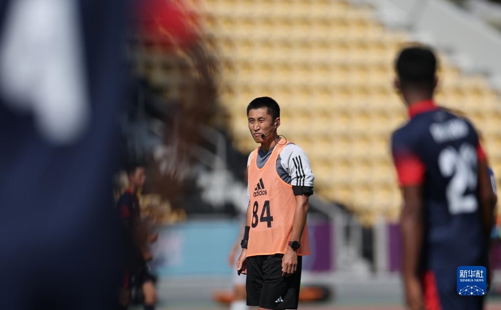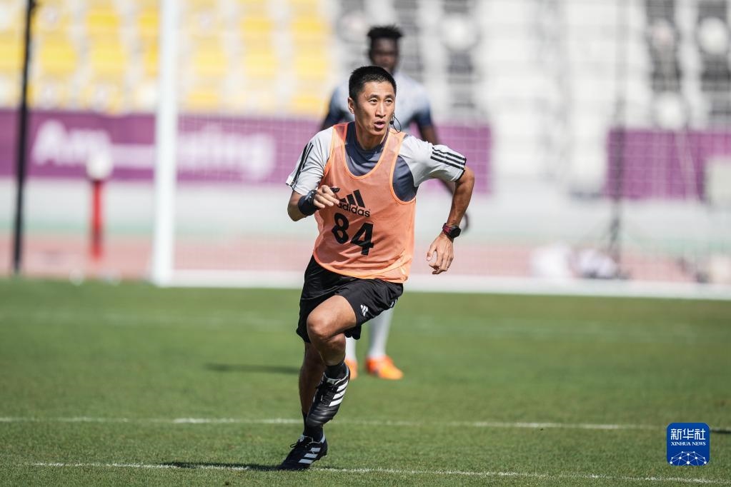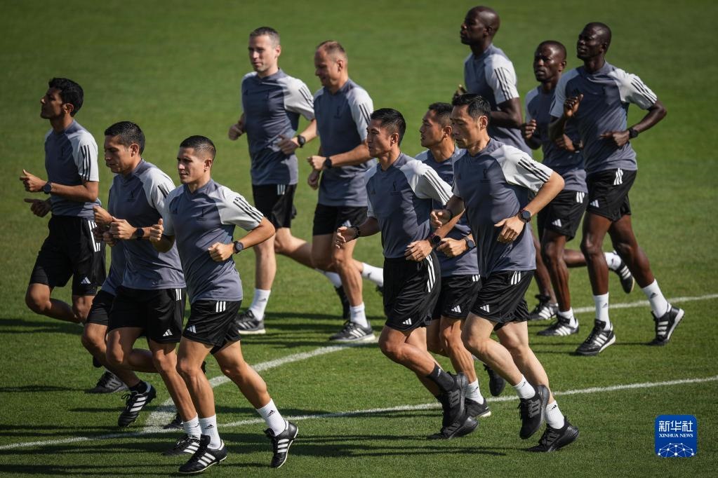 當(dāng)日,入選2022年卡塔爾世界杯裁判員名單的中國裁判馬寧、曹奕與施翔在卡塔爾體育俱樂部球場進(jìn)行訓(xùn)練。