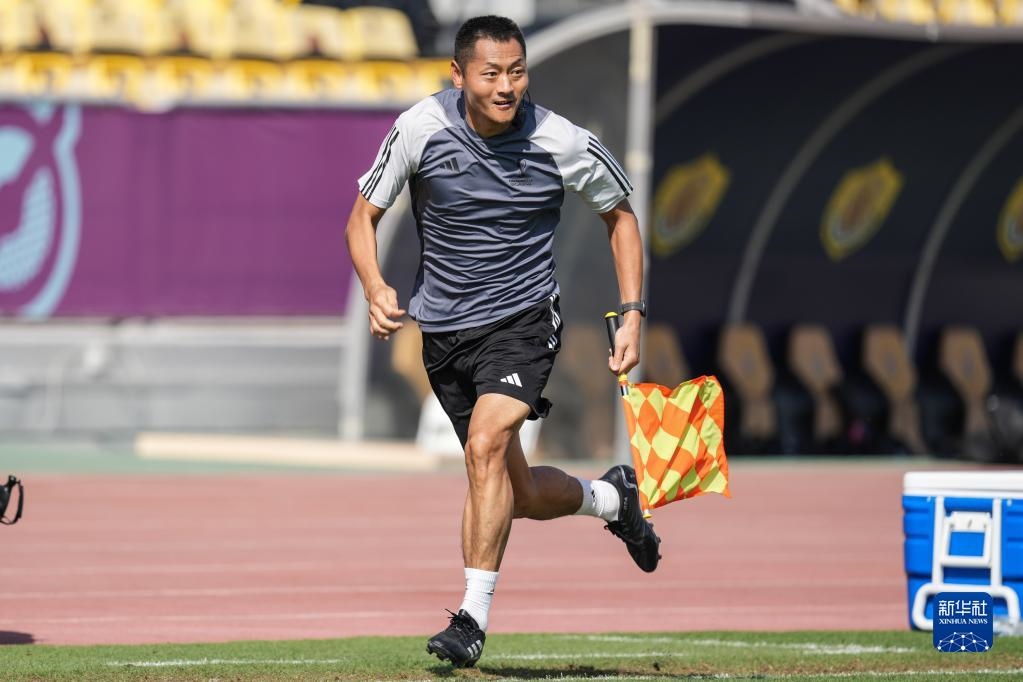 11月18日,中國裁判馬寧在訓(xùn)練中。新華社記者 潘昱龍 攝