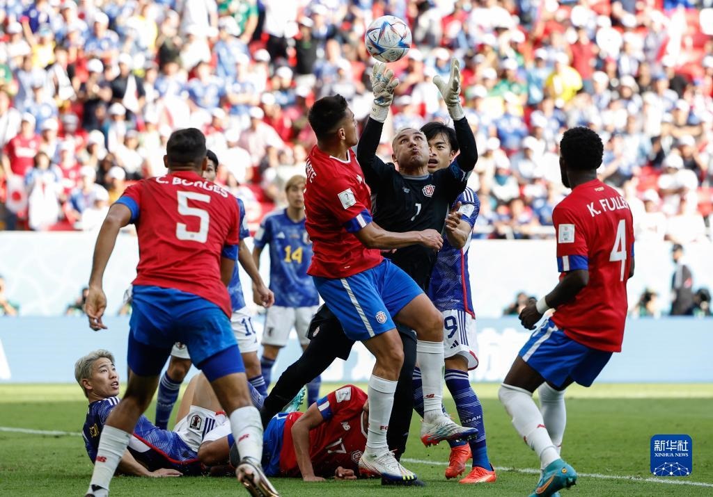 11月27日,哥斯達黎加隊守門員納瓦斯(右三)撲救。新華社記者 王麗莉 攝